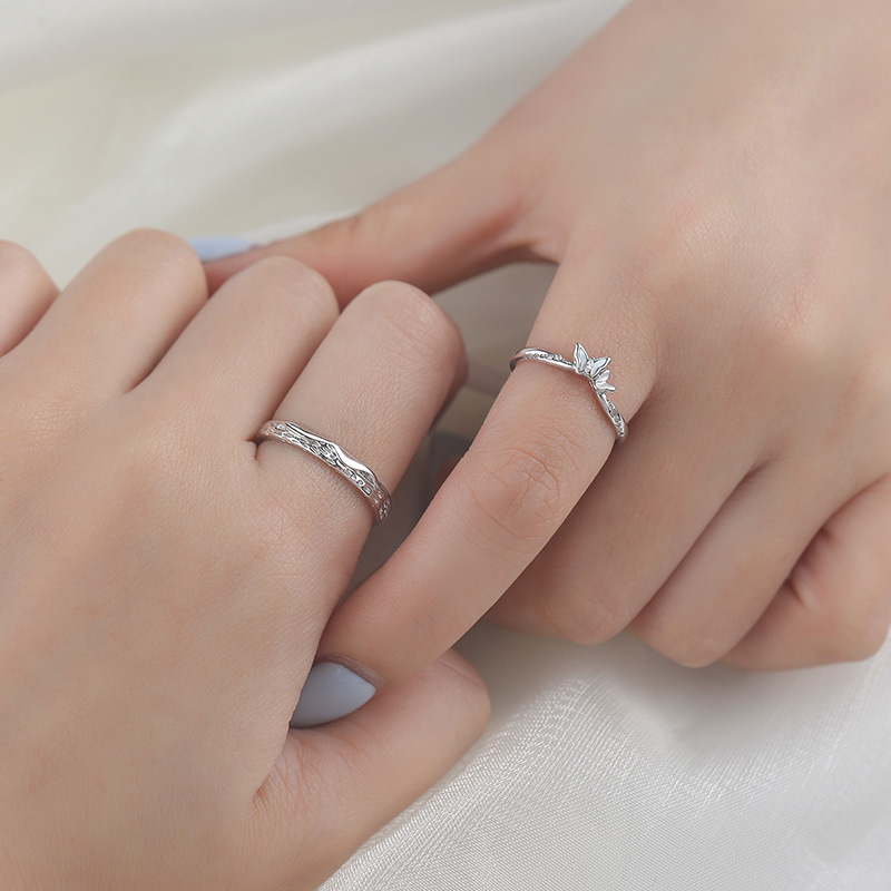 阿宝S999足银独特设计蝴蝶与春山情侣对戒清新森系高级感戒指
