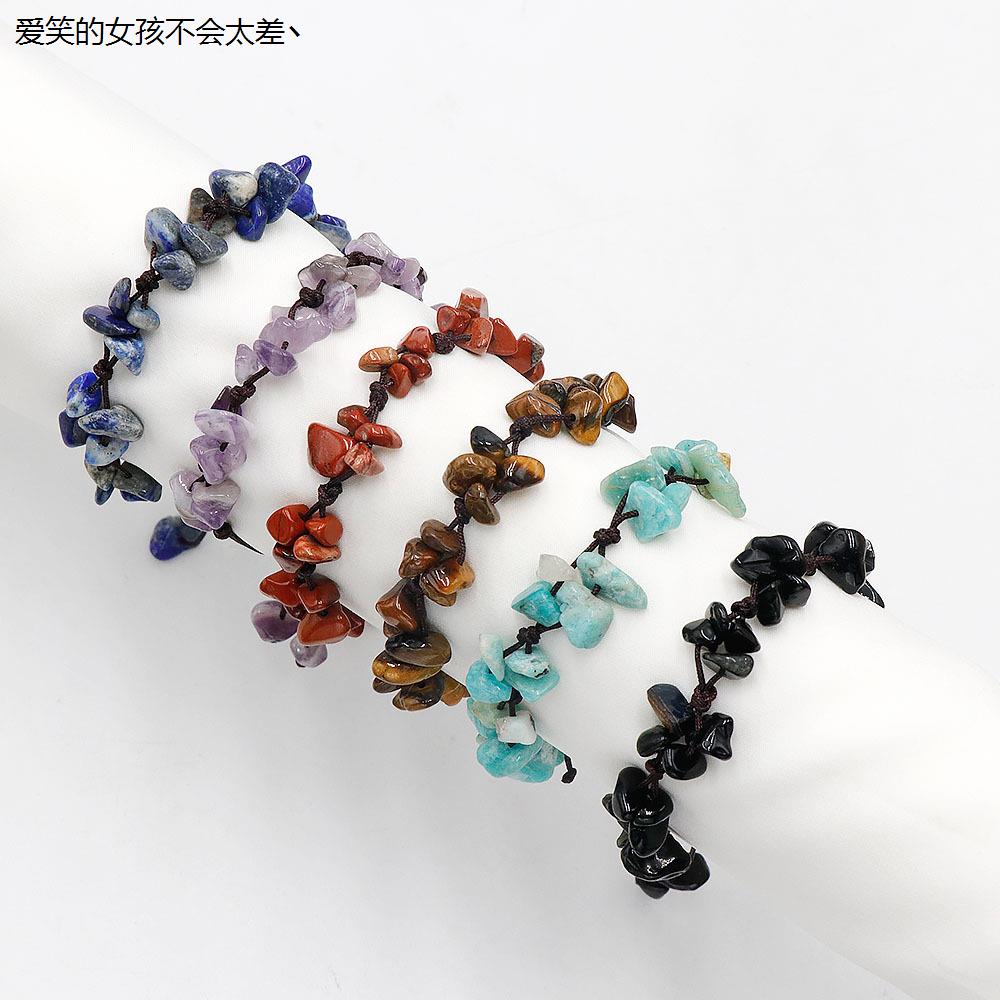 天然石水晶玛瑙砾石编织手镯紫水晶玫瑰石英不对称砾石手镯LHAL4