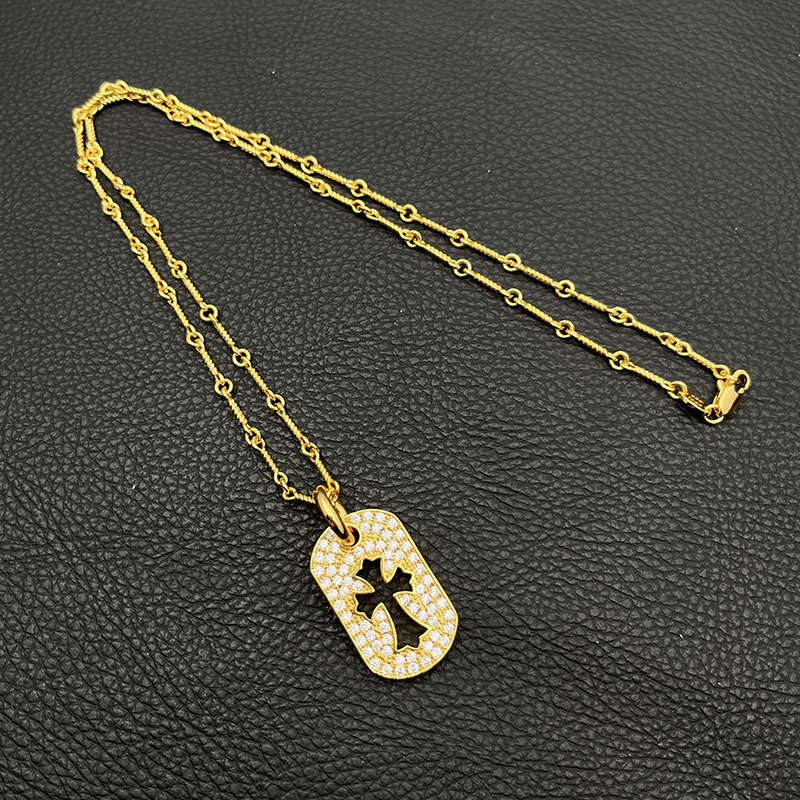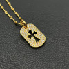 s925纯银克罗伈复古中号满钻镂空十字架军牌项链男女欧美个性吊坠