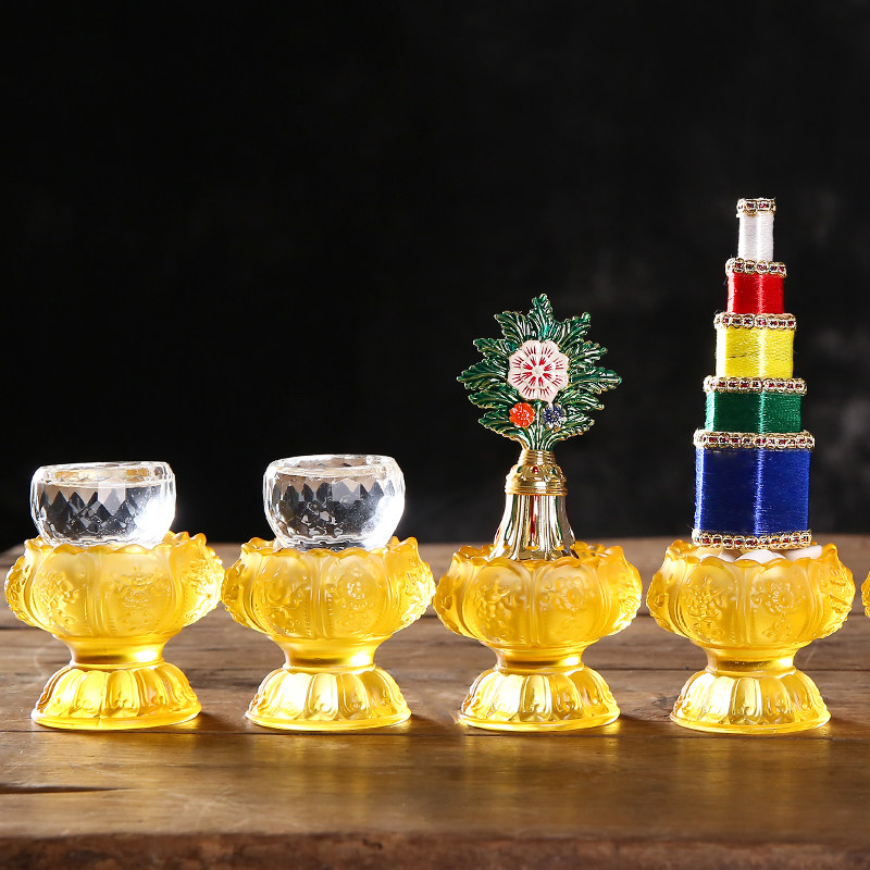博福琉璃八吉祥供水杯供水碗八供养组合套装海螺塔香家用供奉摆件
