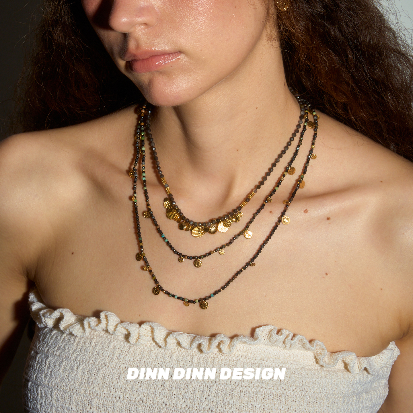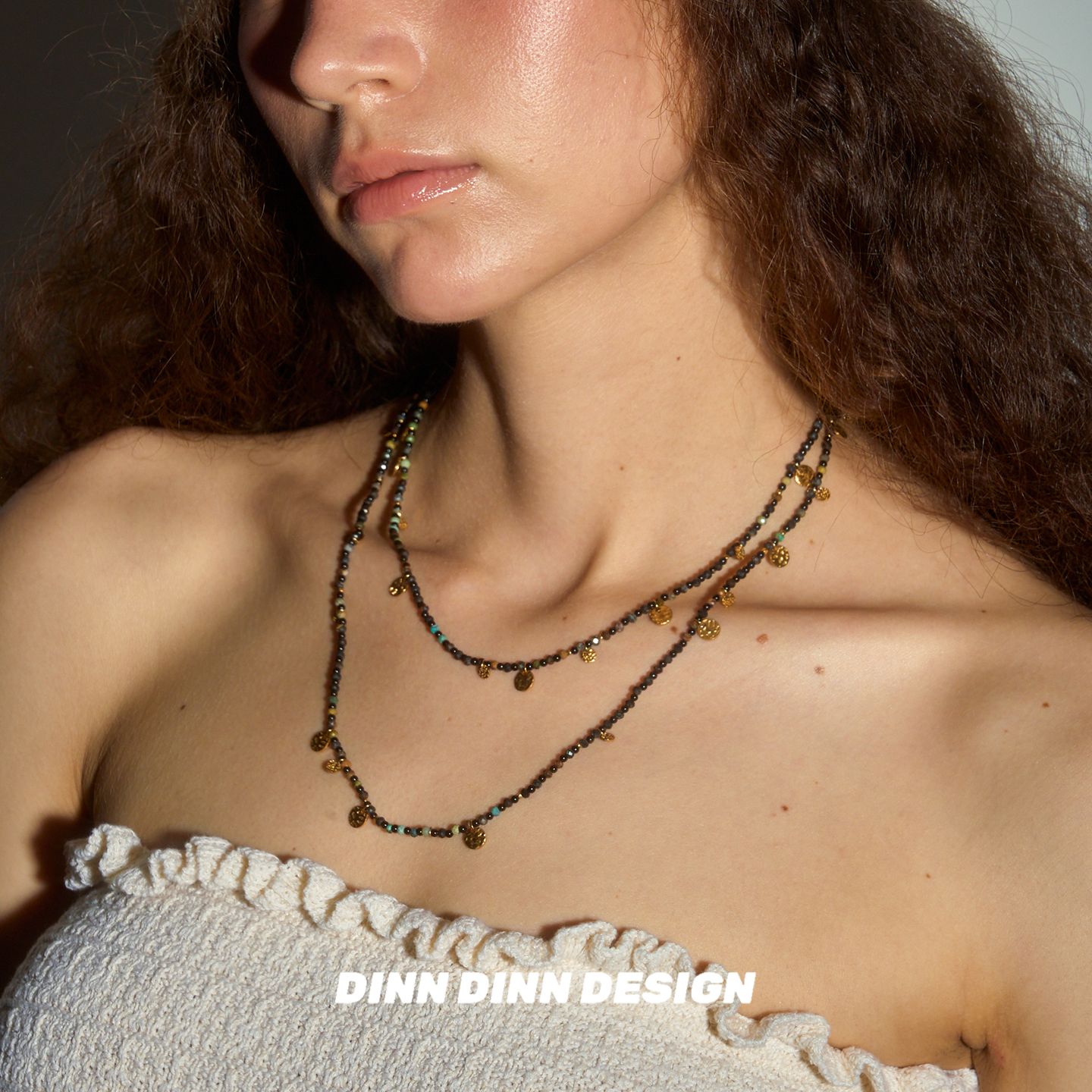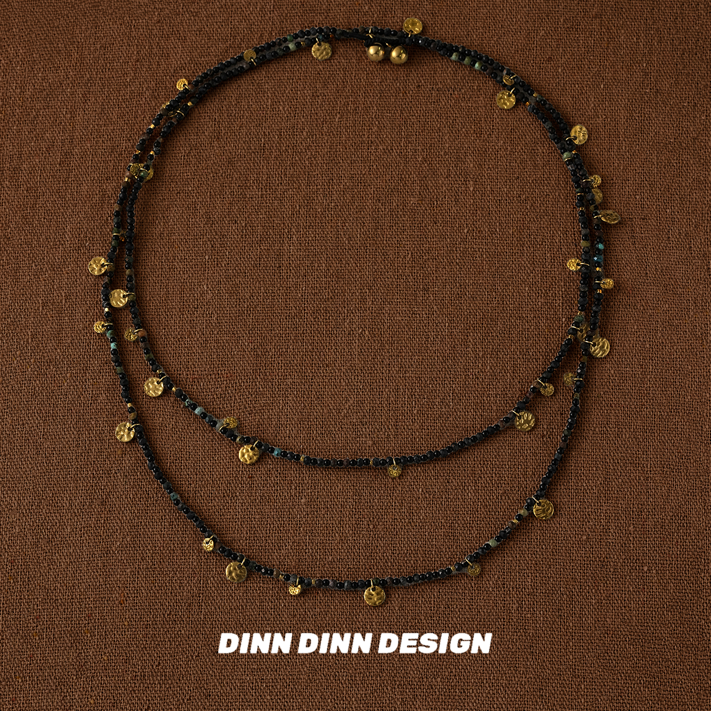 Dare买手店DINN DINN DESIGN长款黑色串珠金色片片项链玛瑙民族风