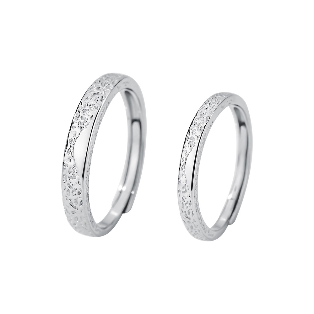 冰川纯银情侣戒指一对小众设计轻奢素圈送女友情人节礼物刻字对戒