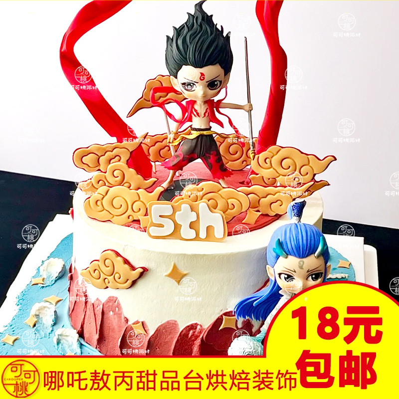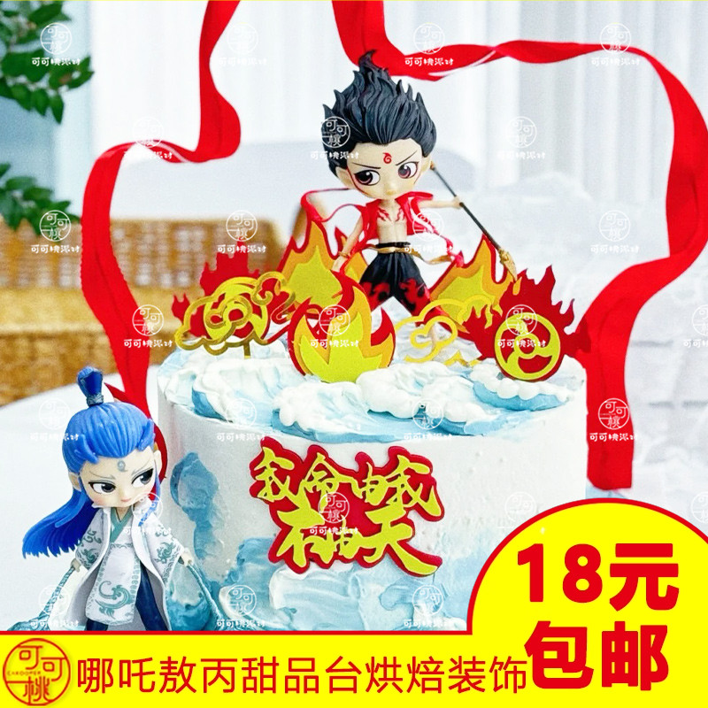 哪吒敖丙蛋糕装饰摆件套装混天绫丝带结界兽我命由我不由天纸插件