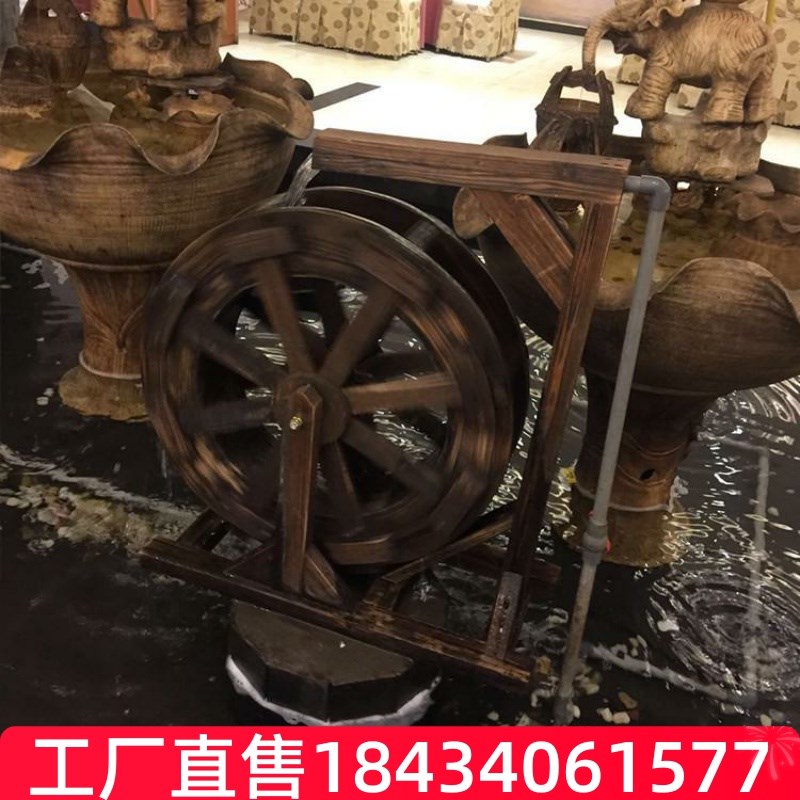 木制摆件鱼缸喷流水风风车假山大中小型鱼池z水轮木户.防腐水车外