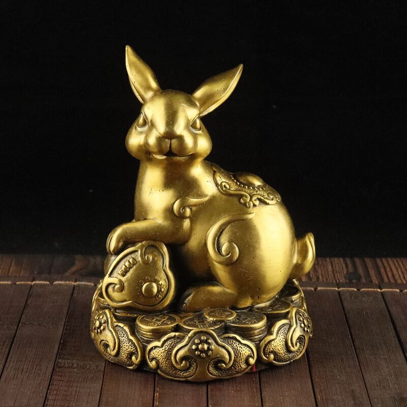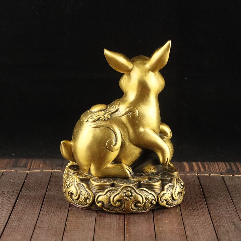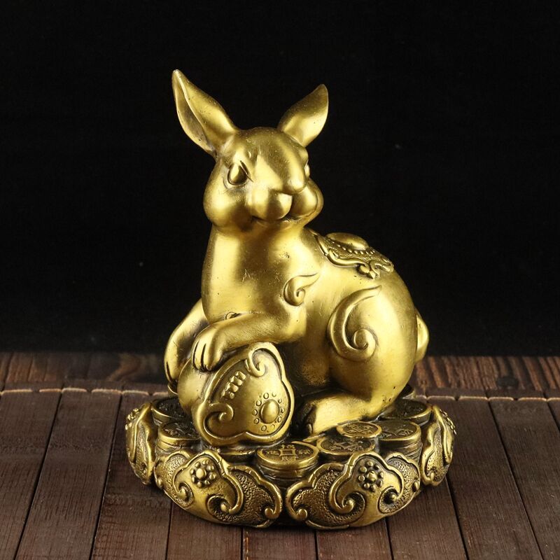 纯铜兔子摆件家居装饰品客厅摆设工艺品生肖兔福字铜兔礼品中式
