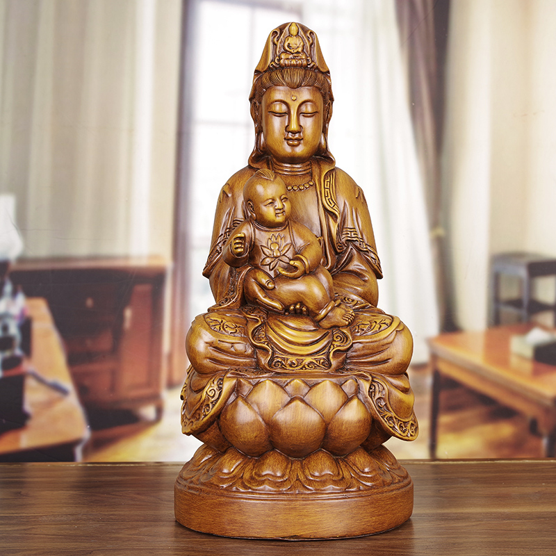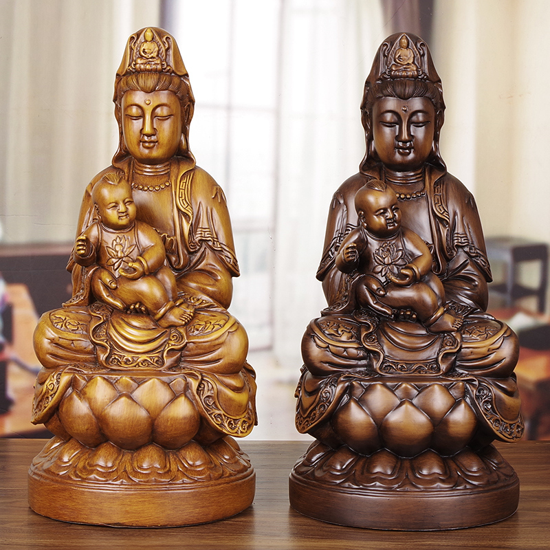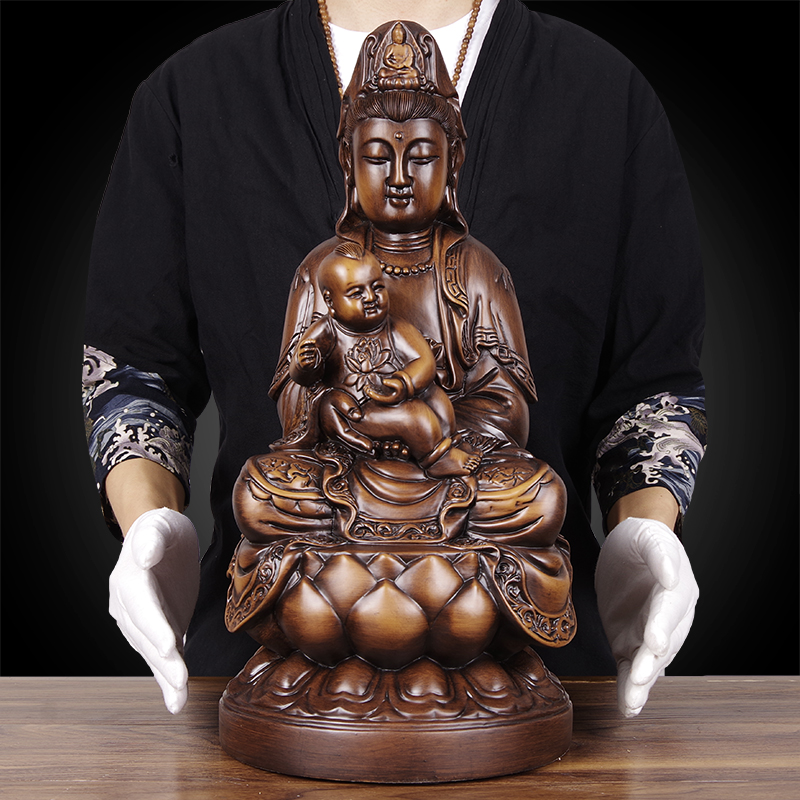 实木雕送子观音摆件木质坐莲观世音菩萨神像家用供奉观音佛像雕塑