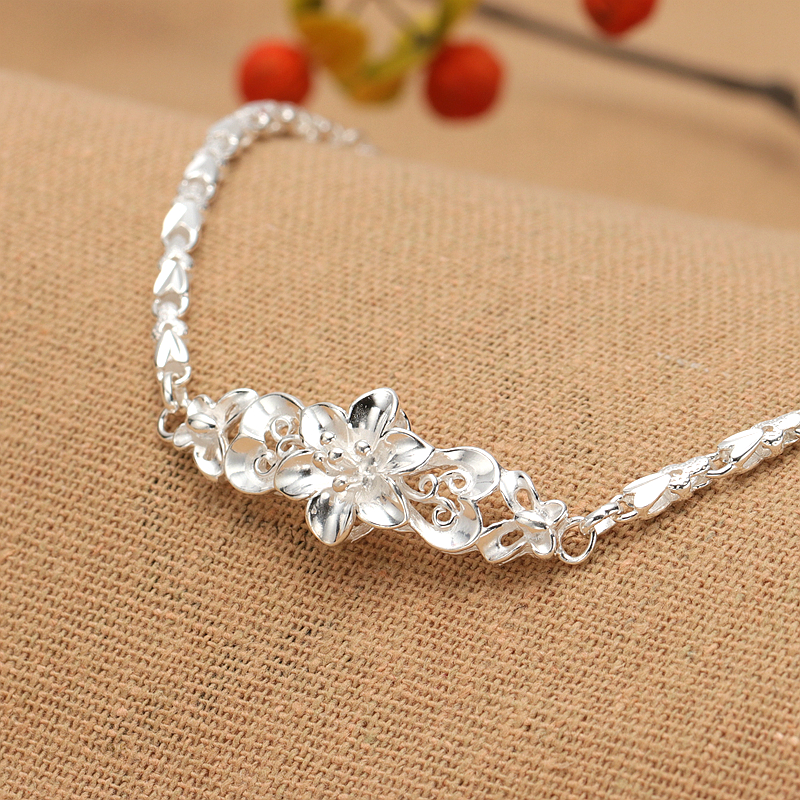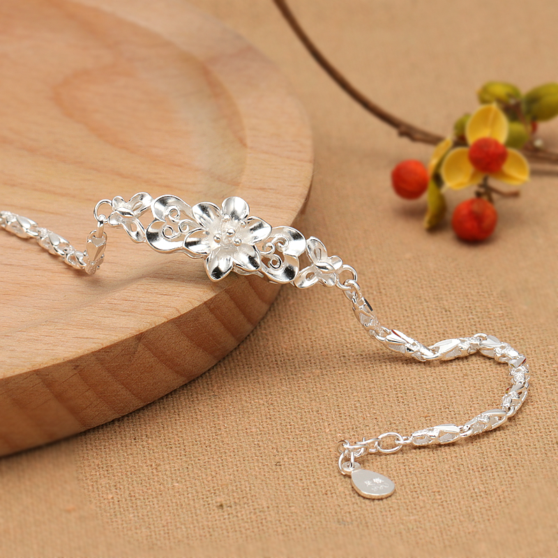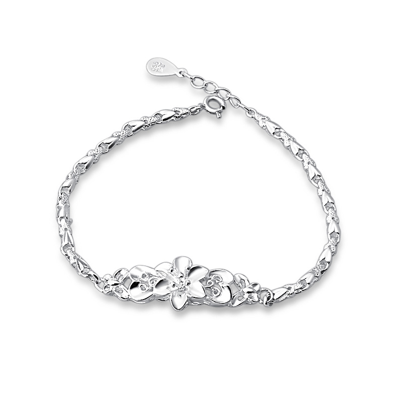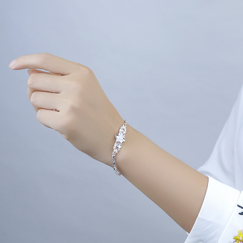 纯银手链女999纯银正品简约清新时尚气质韩花朵手链个性生日礼物