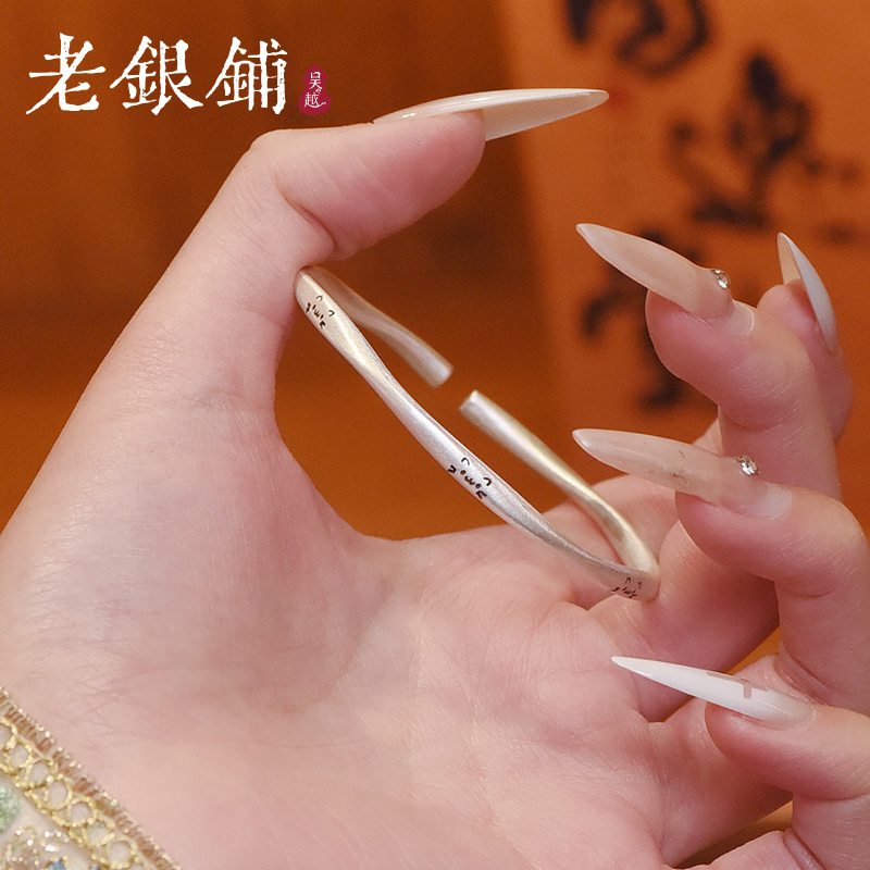 吴越老银铺足银手镯999足银俏喵手镯时尚简约纯银手镯百搭开口
