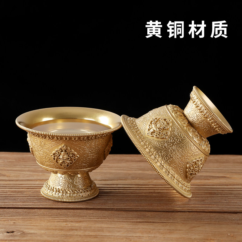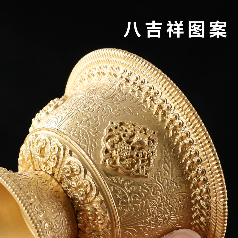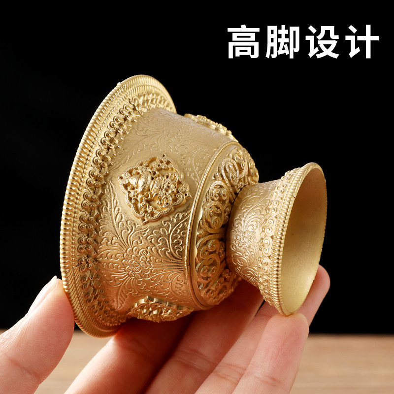 黄铜加厚八吉祥供水杯家用高脚供酒杯佛前供奉摆件供佛净水杯摆件