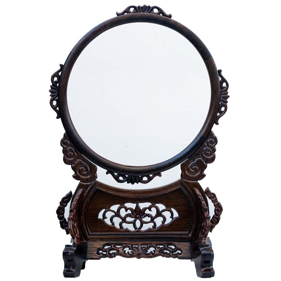 红木鸡翅大红酸枝浮雕花镂空实木火球架台插屏东瓶西镜中堂镜子屏