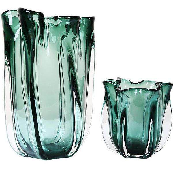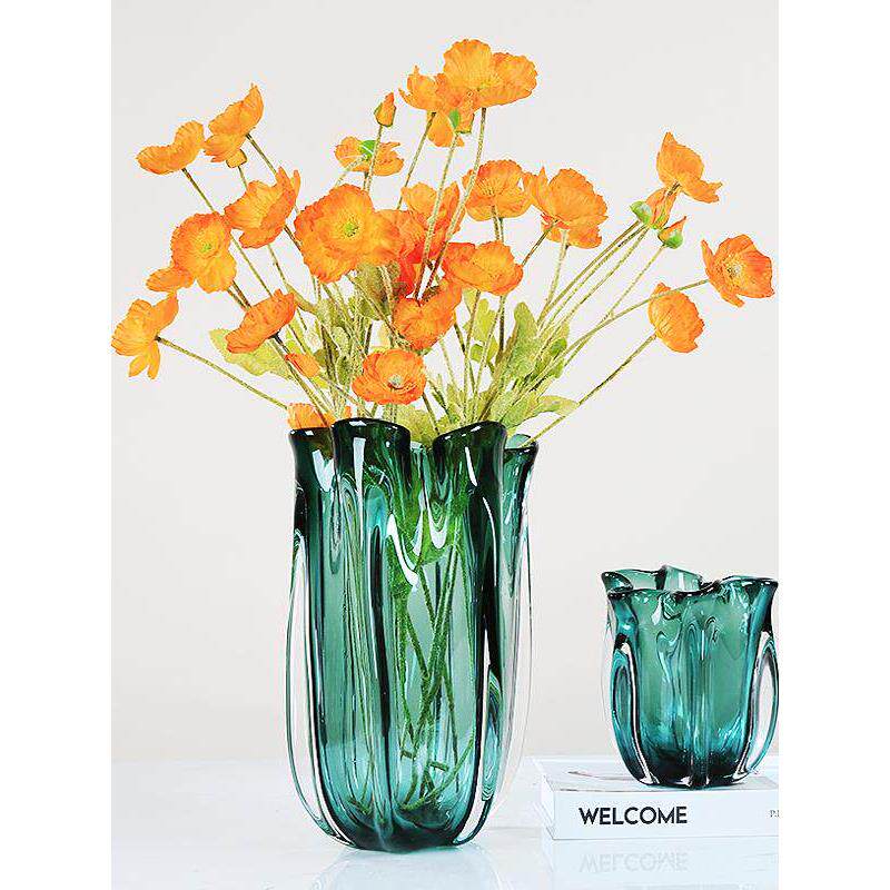 现代轻奢绿色艺术玻璃花瓶摆件简约餐桌样板房花器插花玻璃软装饰