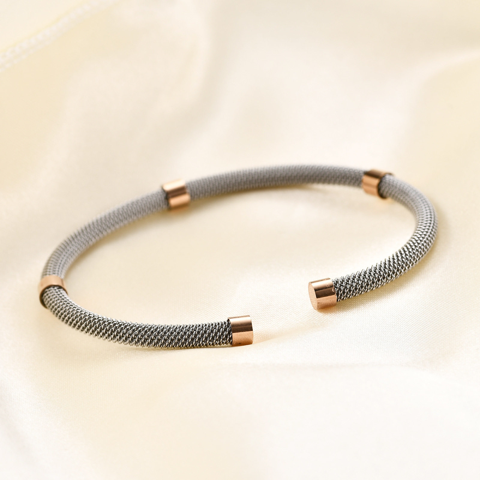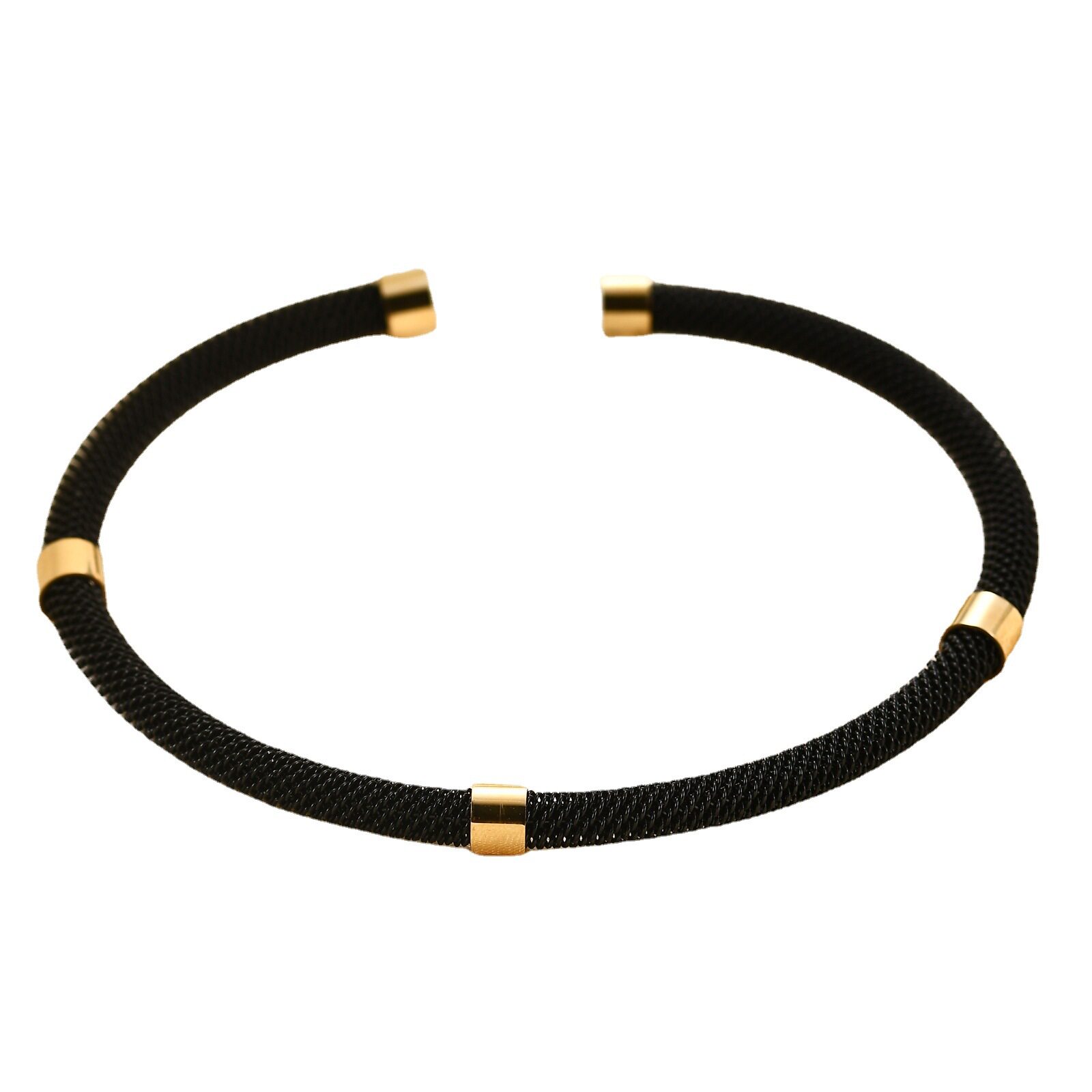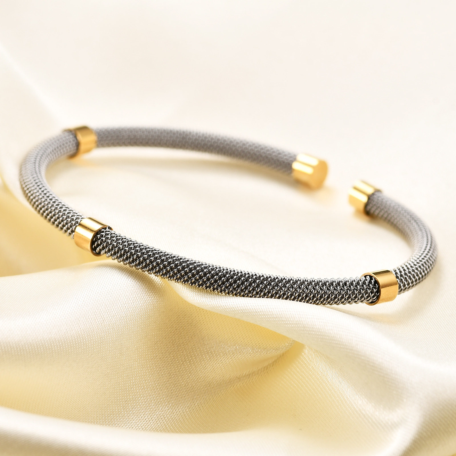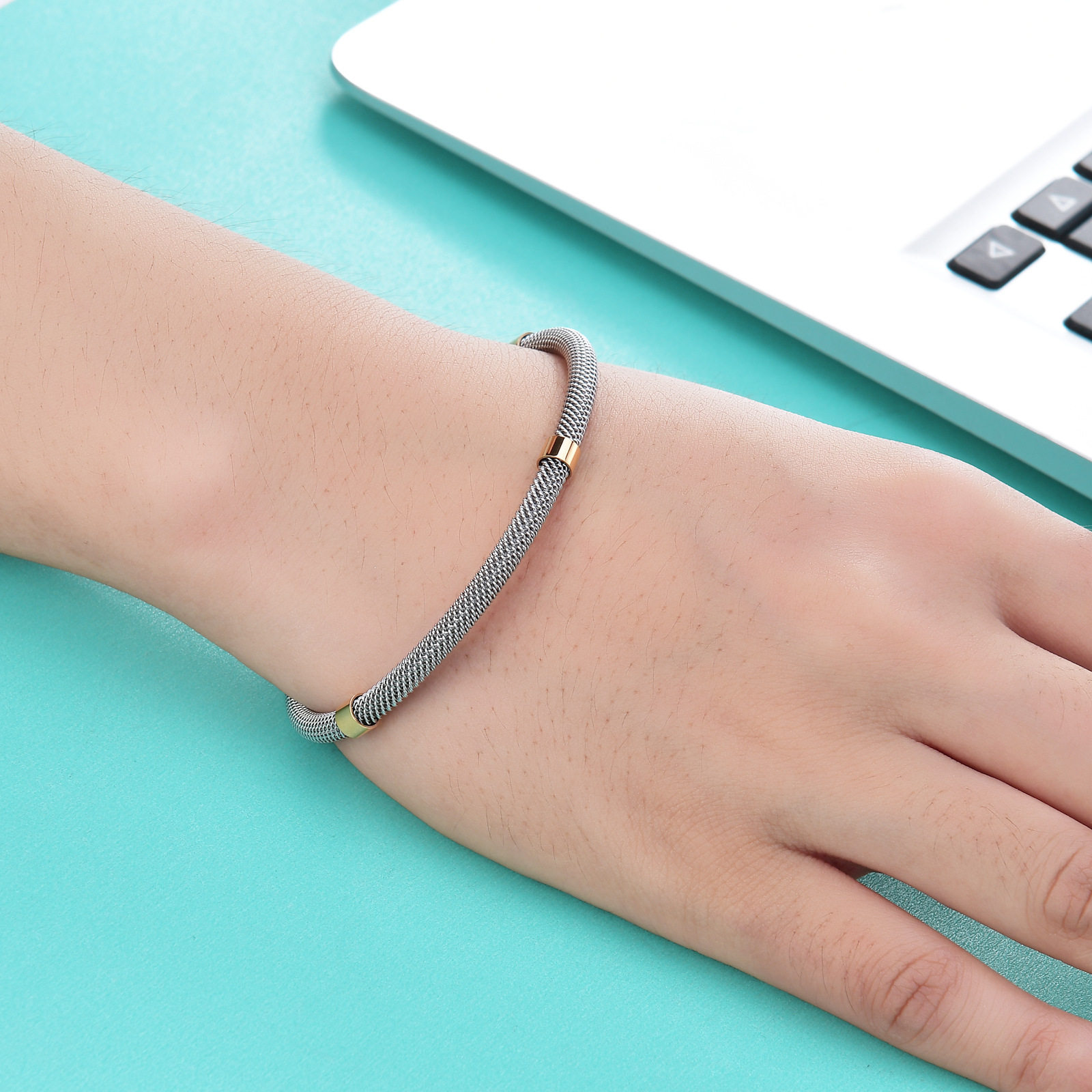 欧美跨境电缆线63MM不锈钢钢丝编织手镯黑色间金钢色时尚百搭手环