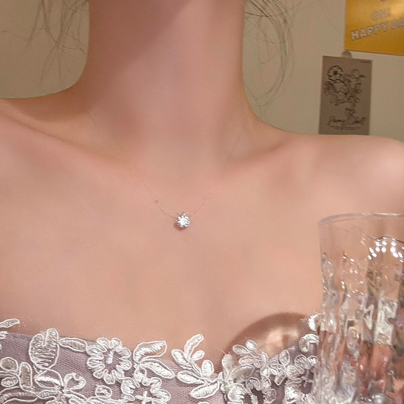 嘟嘟夫妇S925纯银单钻吊坠项链透明隐形鱼线超闪简约颈链锁骨链女