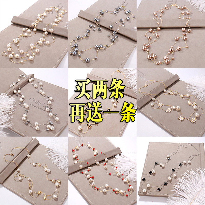 项链女长款韩国时尚简约百搭珍珠挂件小香风气质毛衣挂链秋冬配饰