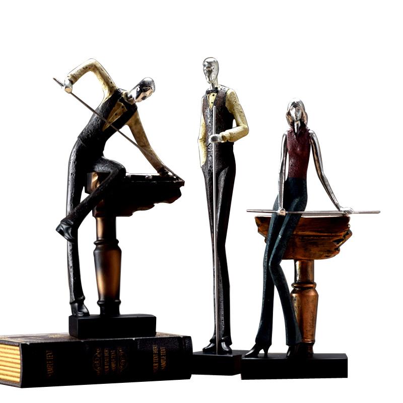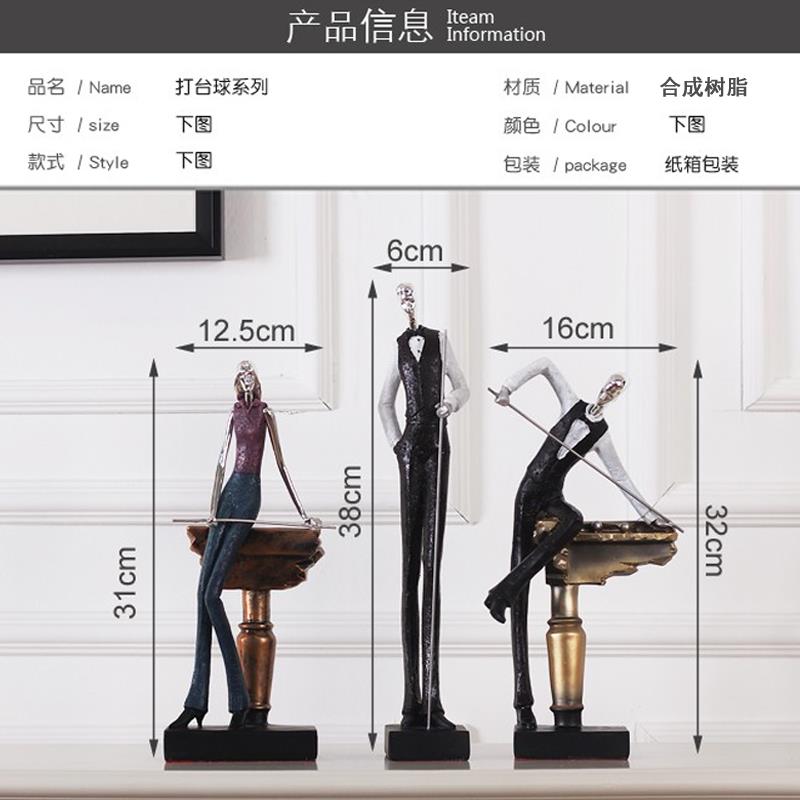 欧式覆古打台球人物摆件家居书房玄关酒柜咖啡厅台球会所装饰摆设