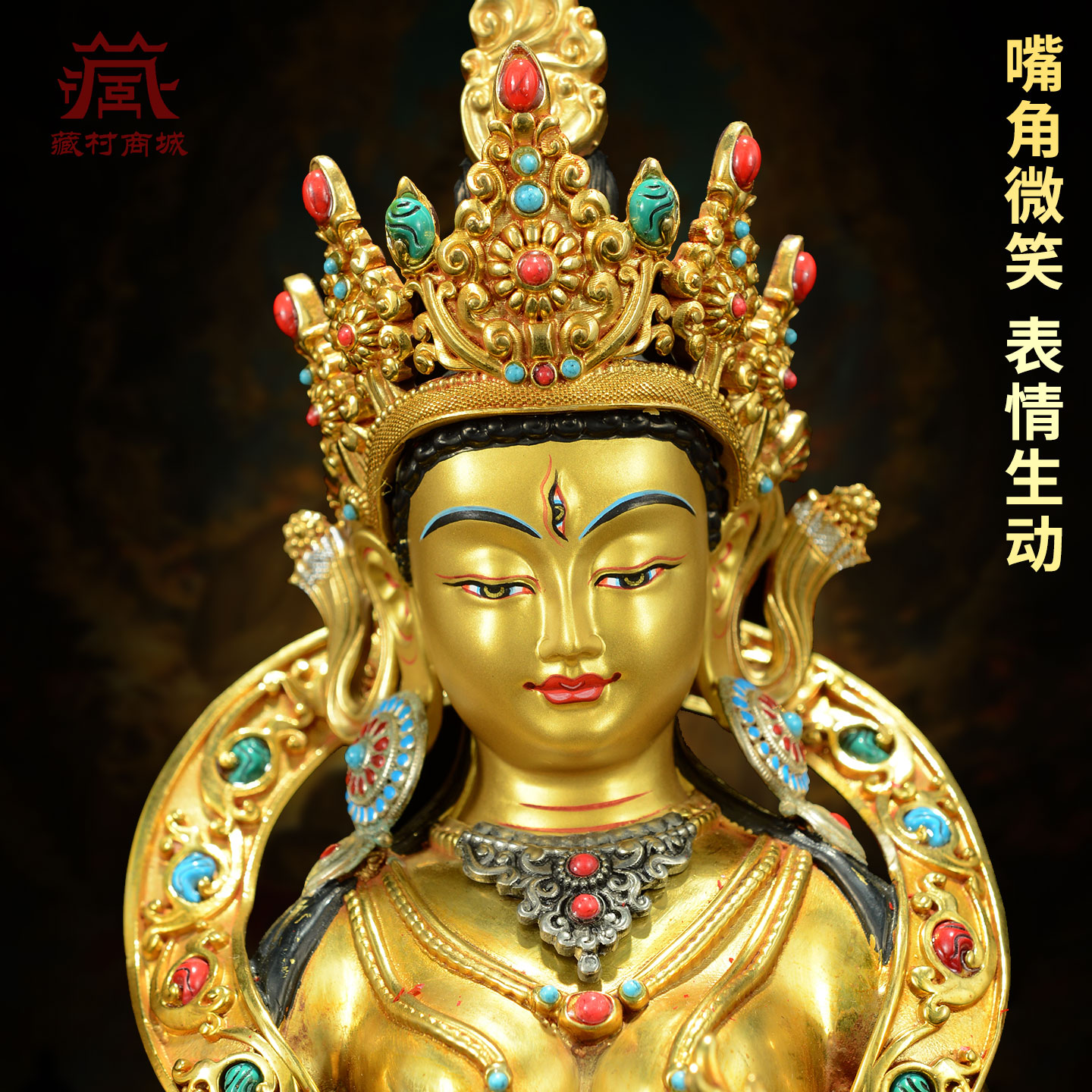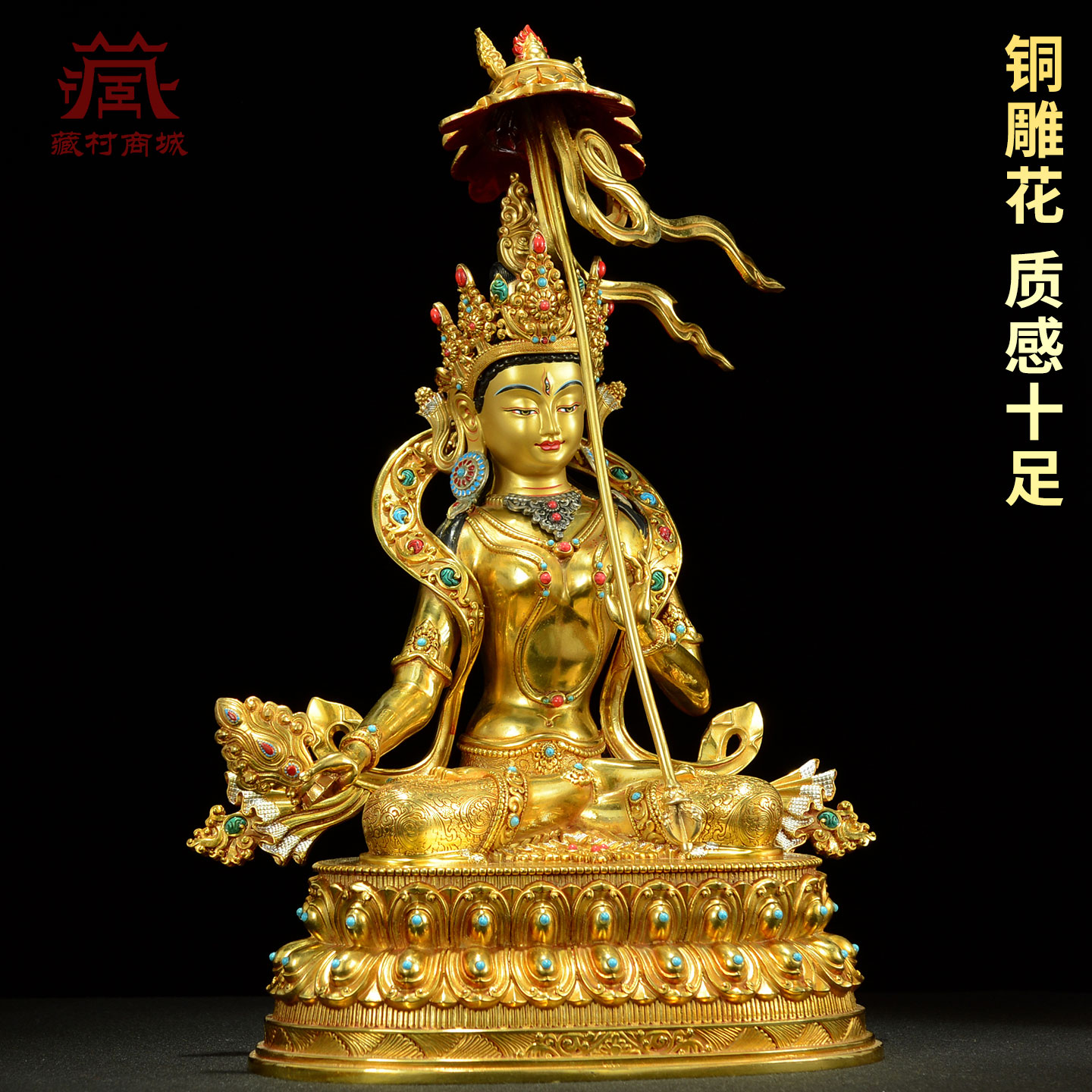 藏村全鎏金《大白伞盖佛母》铜佛像精工铜《大回遮佛母》装饰摆件
