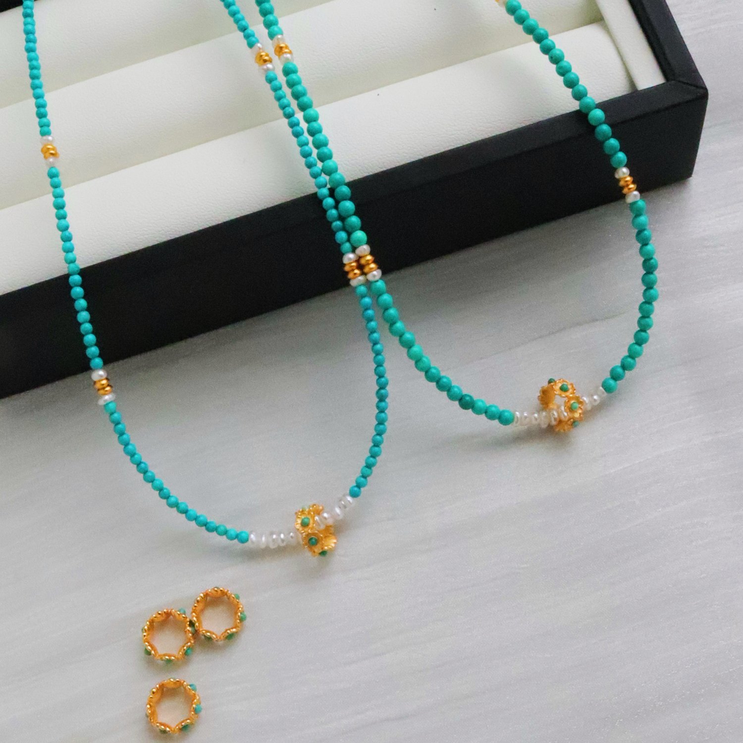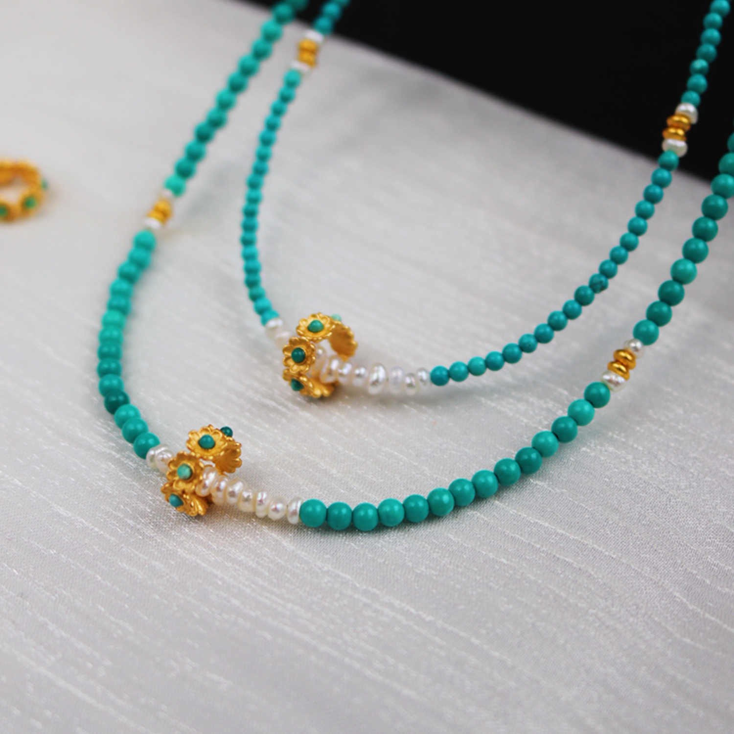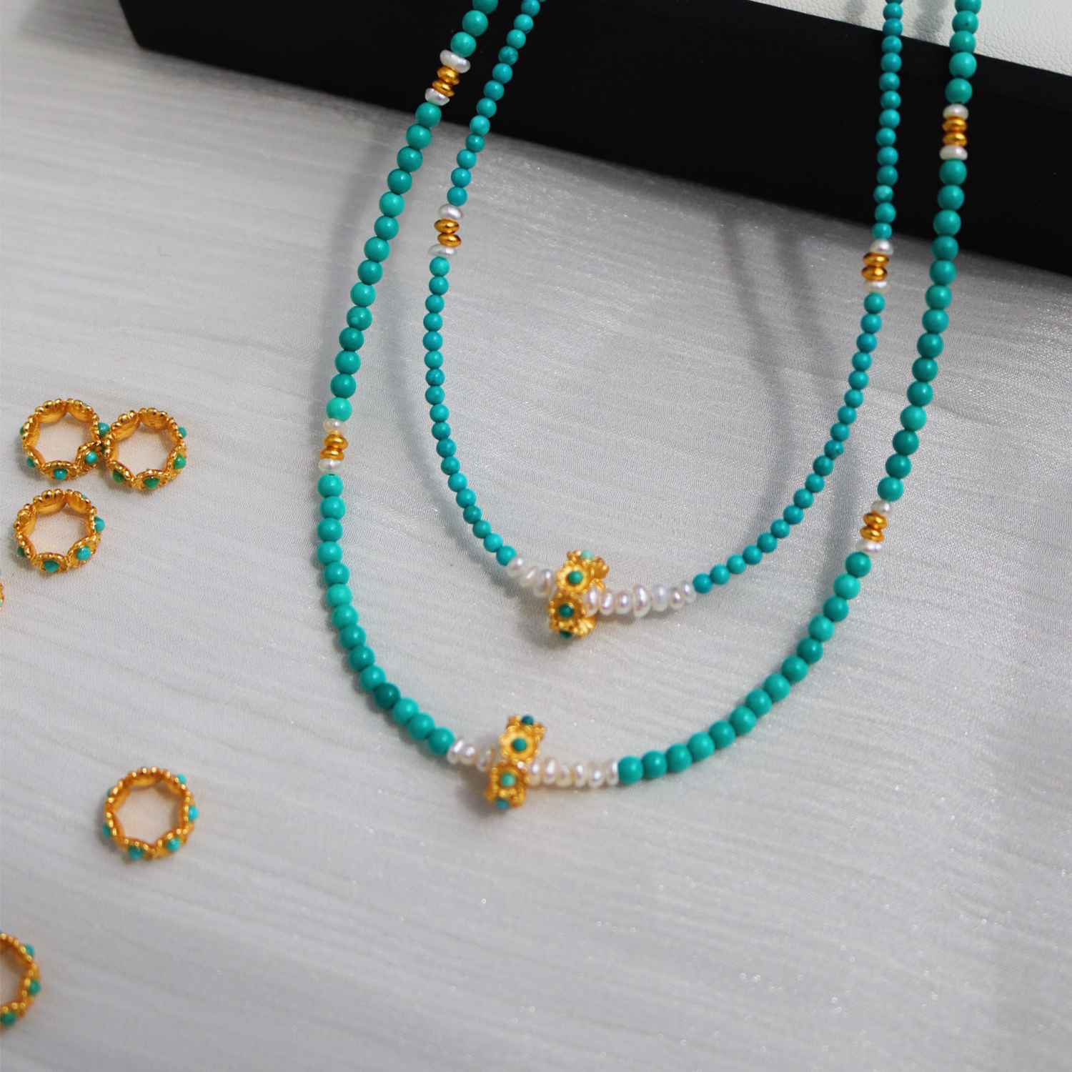 原创轻奢花环天然绿松石珍珠项链女小众设计高级感锁骨链2025年新