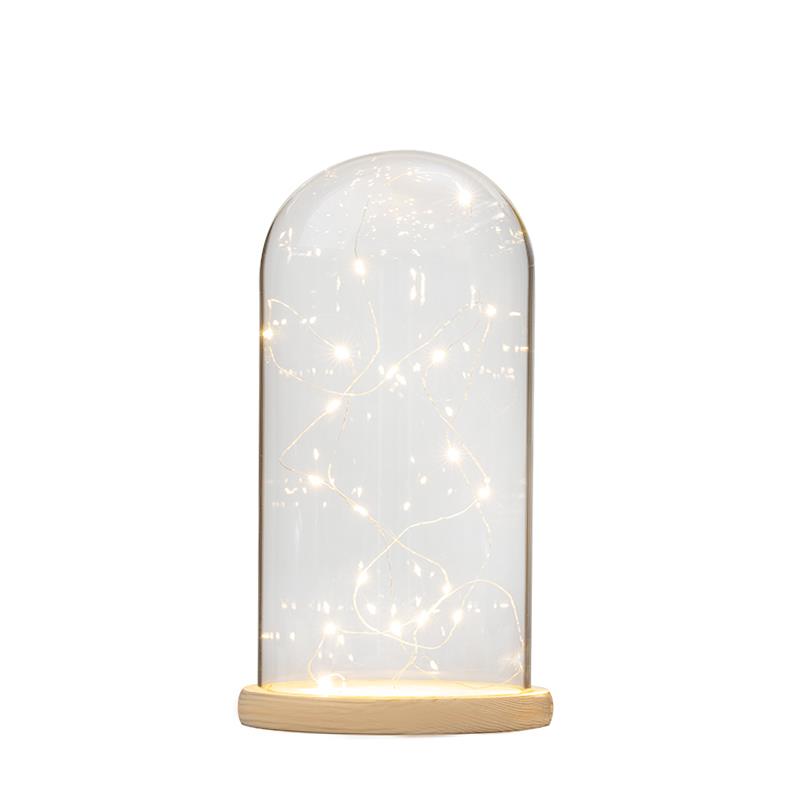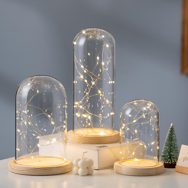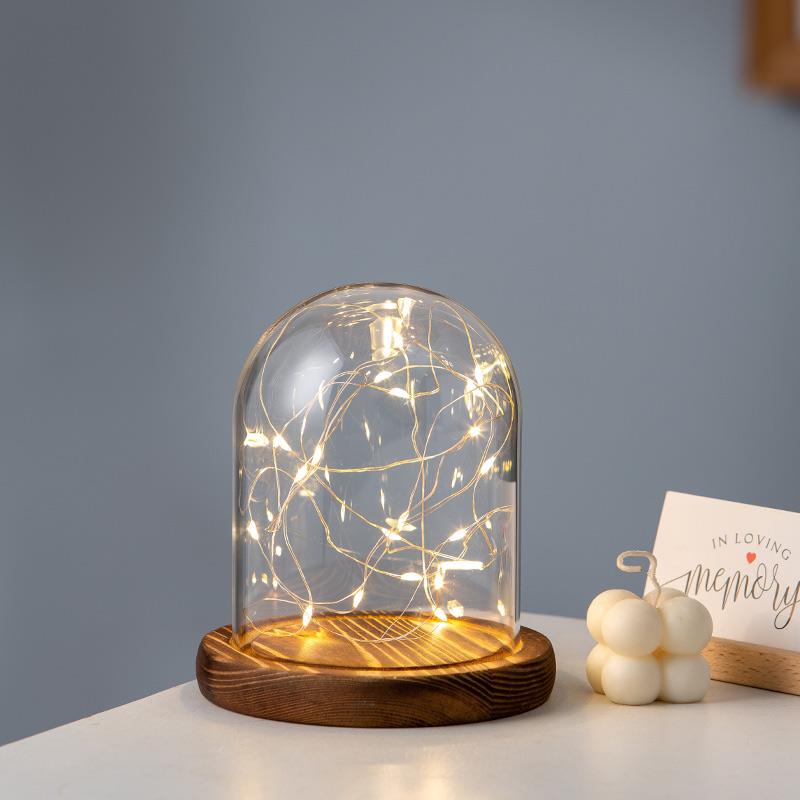 促销DIY永生花玻璃罩创意摆件居家装饰透明防尘 火树银花底座带灯