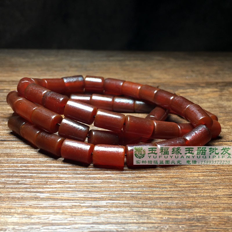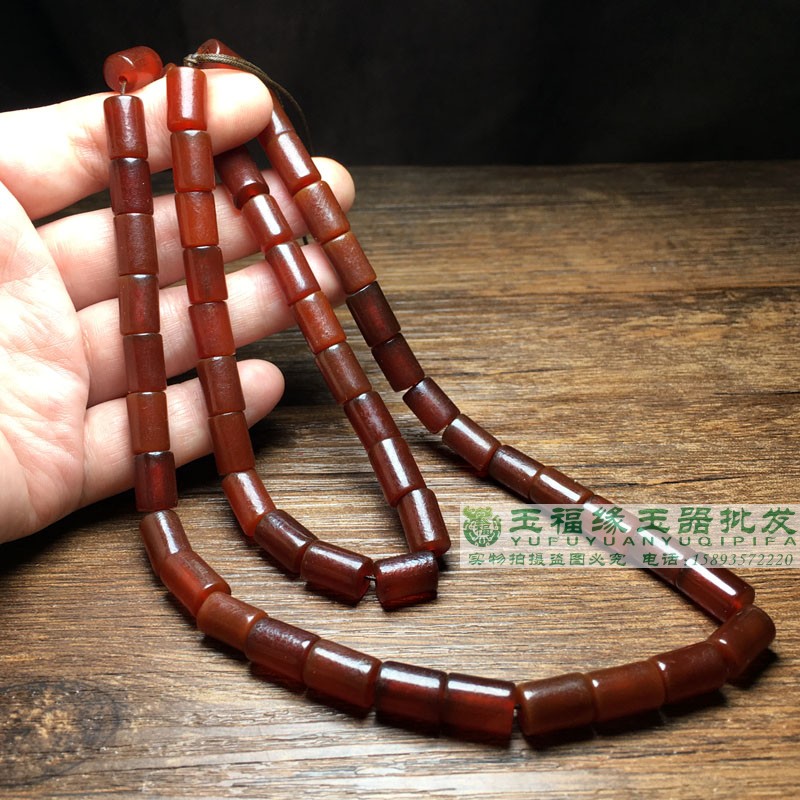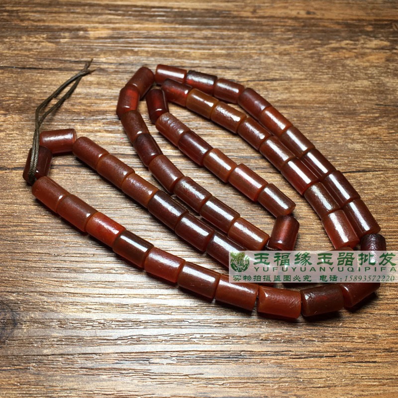 古玩包浆老珠子红色老玛瑙糖色玛瑙长管珠串高古手工老玛瑙管珠串