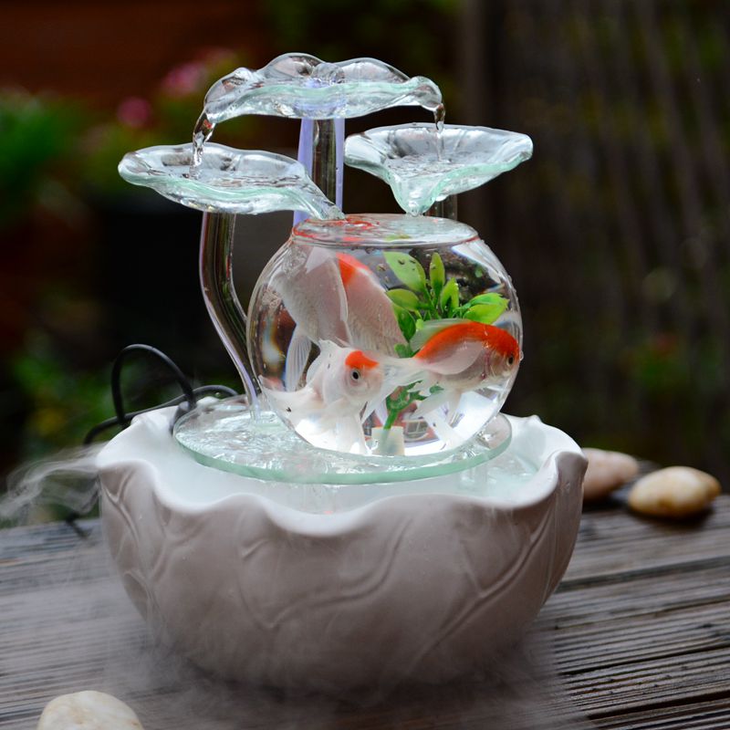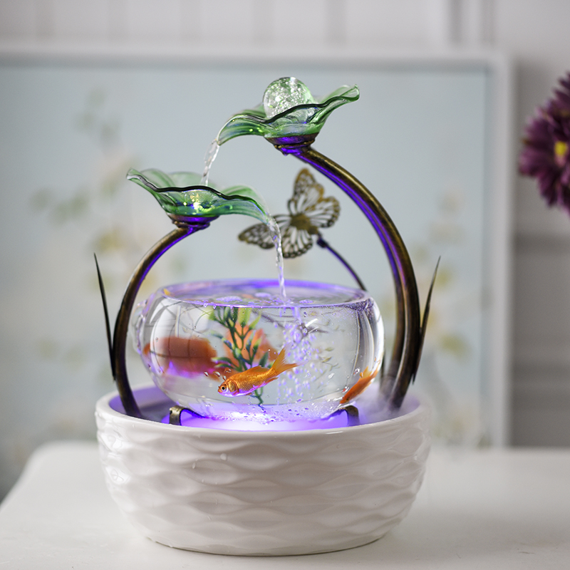 家居小型客厅鱼缸流水电视柜摆件陶瓷喷泉桌面加湿器创意生日礼物
