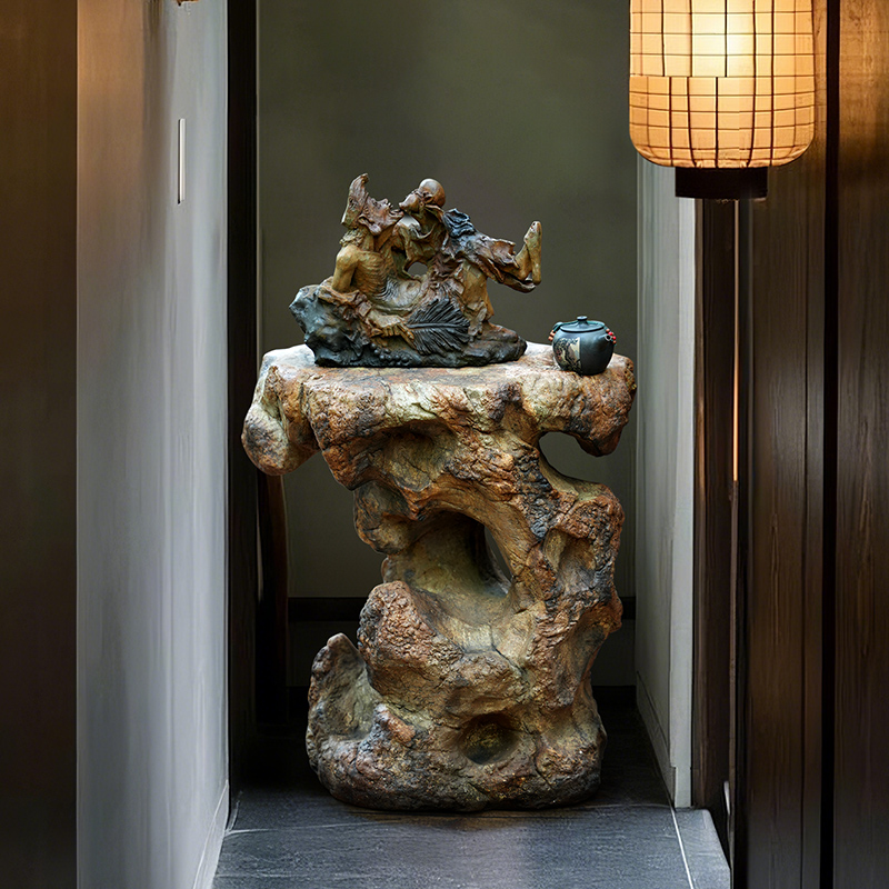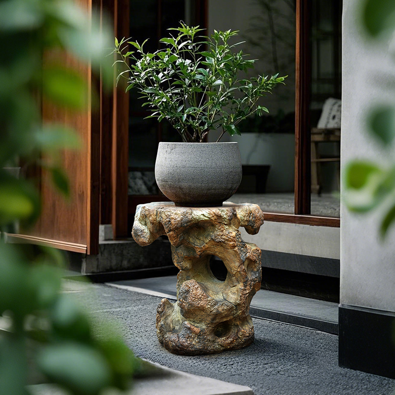 水磨坊中式庭院仿石景观太湖石花盆底座阳台露台花园布置造景摆件