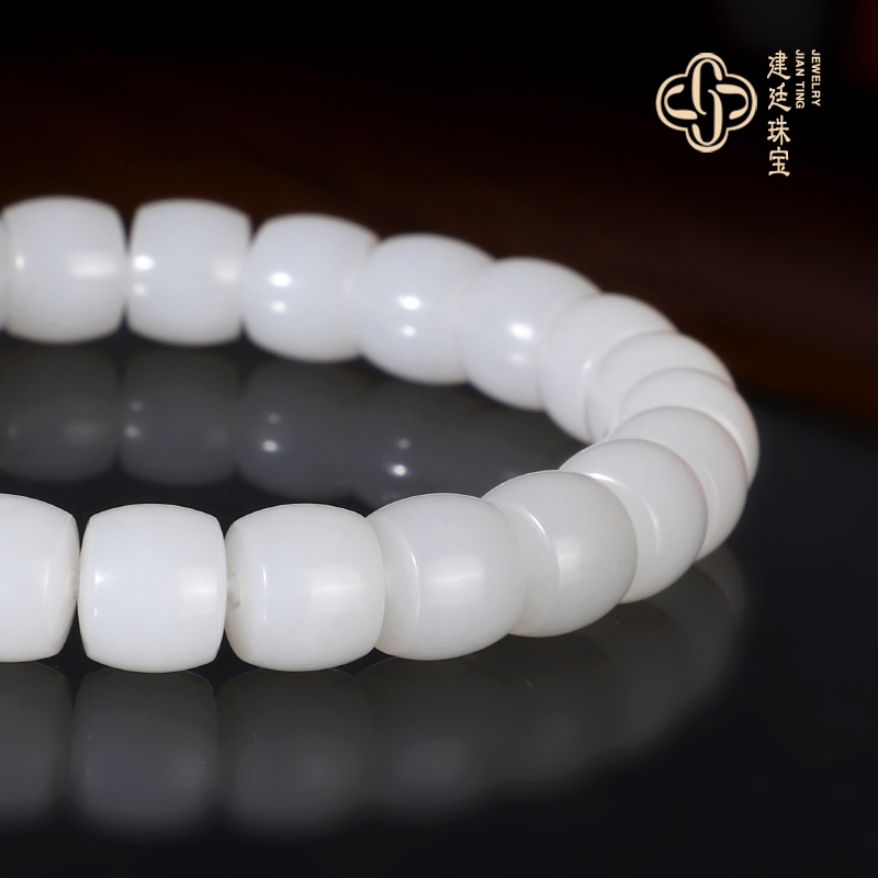 建廷俄料白玉直切老型珠手串 精工 一级白 羊脂白玉手链直径8x7mm