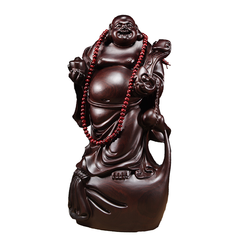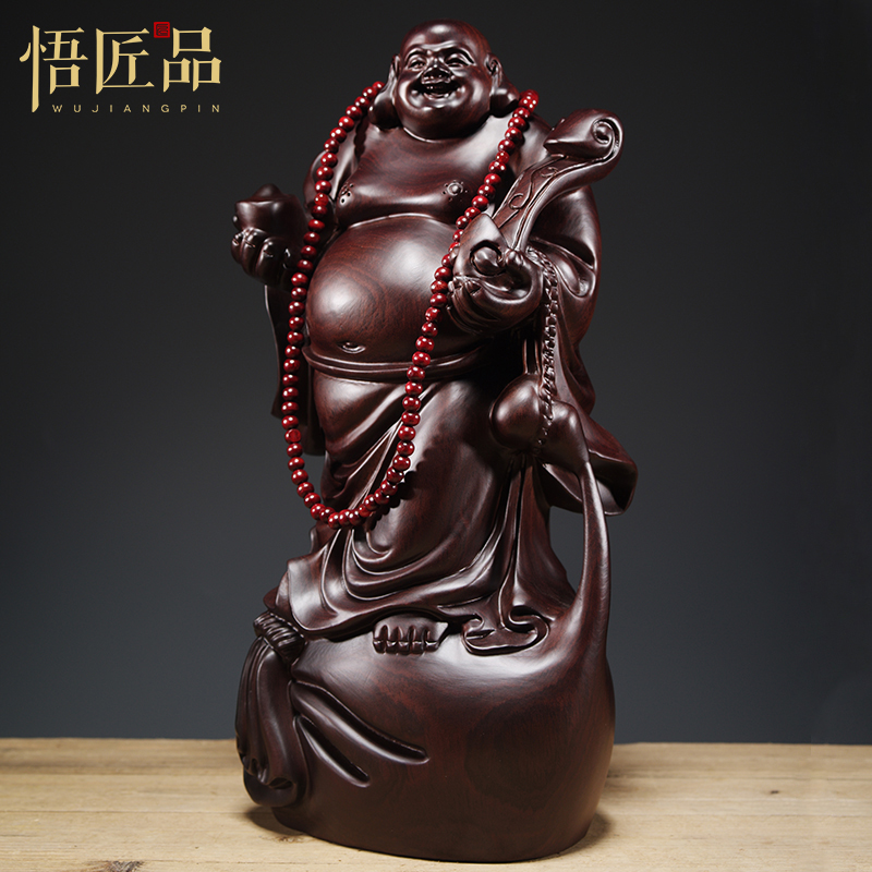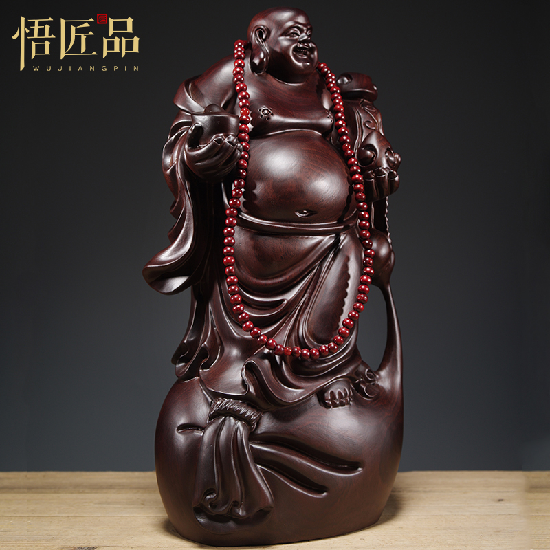 黑檀木雕弥勒佛像摆件实木质笑佛质如意布袋佛家居客厅红木工艺品