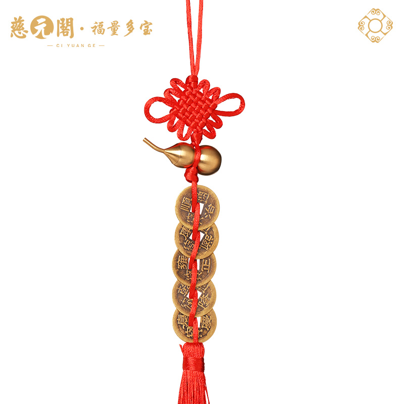 慈元阁2026五帝钱门对门葫芦挂件真品铜钱压门槛入户大门玄关摆件