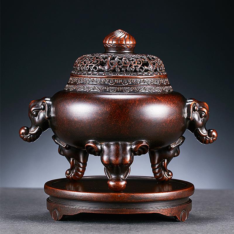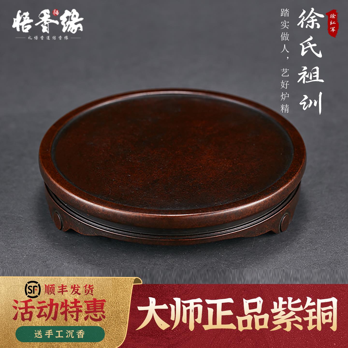 悟香缘 紫铜香炉纯铜底座彷古工艺品香炉底架纯铜圆型托架香插