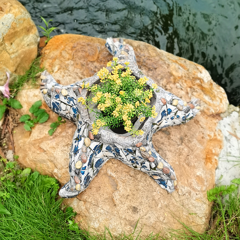 庭院花园装饰品复古印花海螺花盆摆件一楼小院子创意个性多肉盆栽