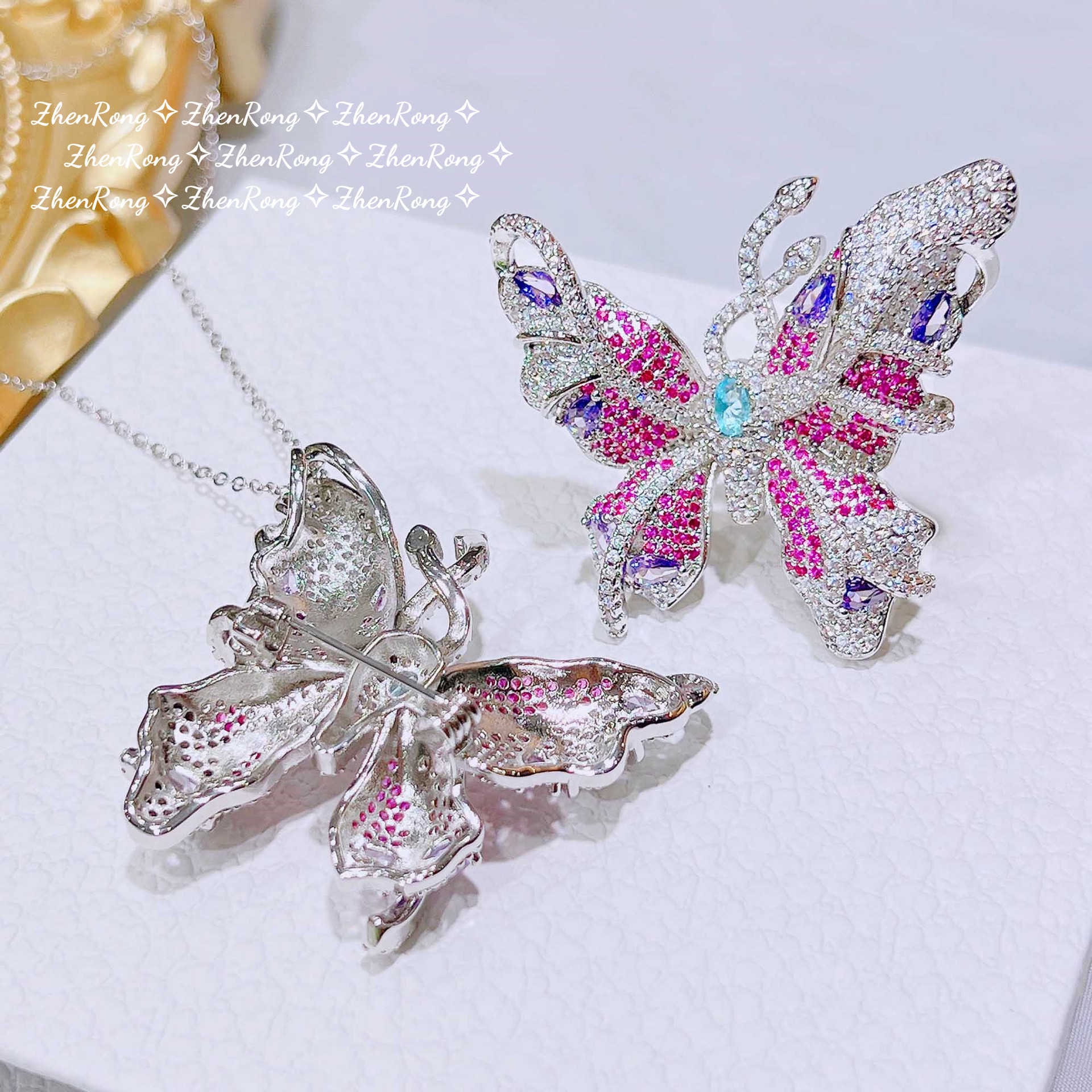 Young奢华重工梦幻胸针两戴项链 精致灵动幻境薰衣草紫色蝴蝶戒指