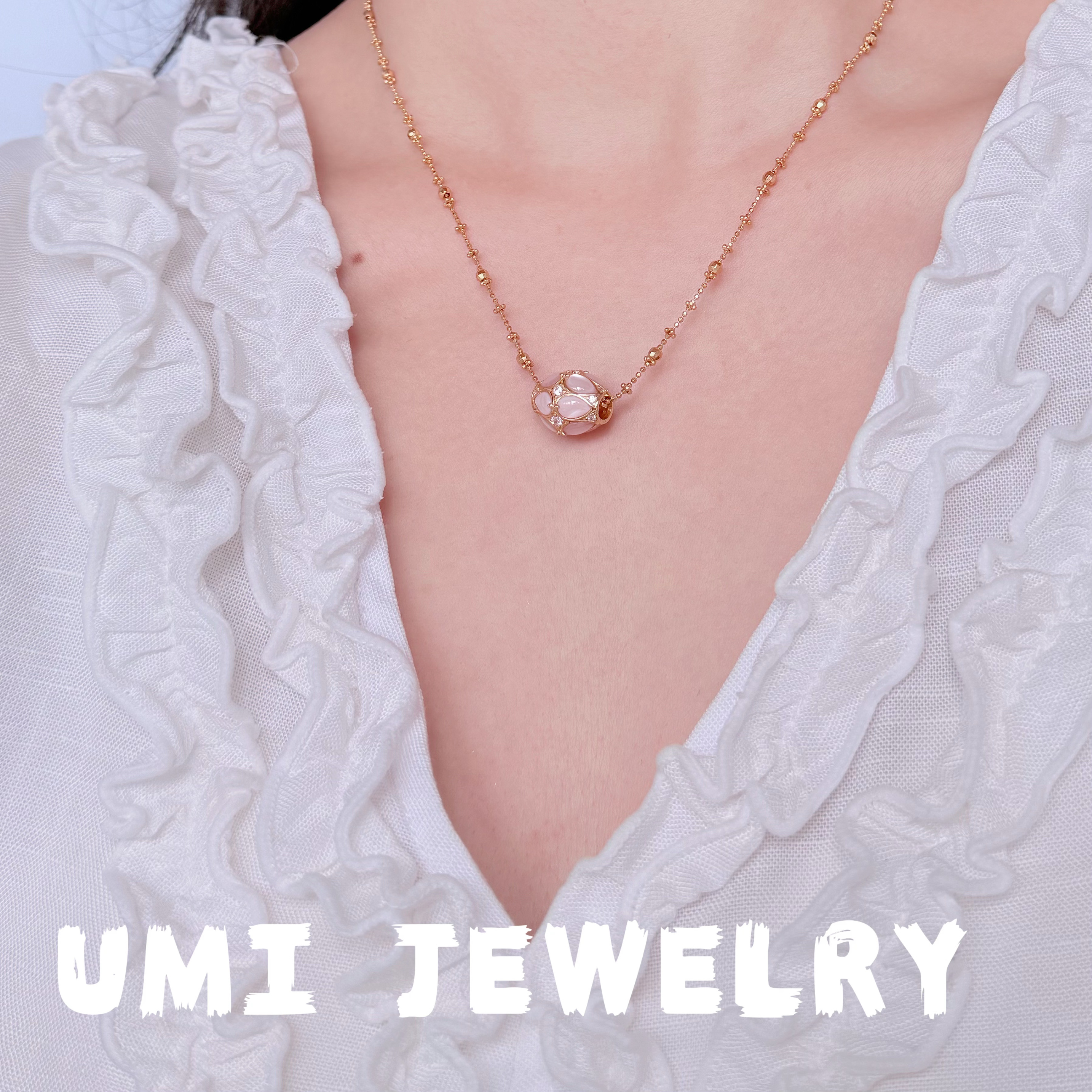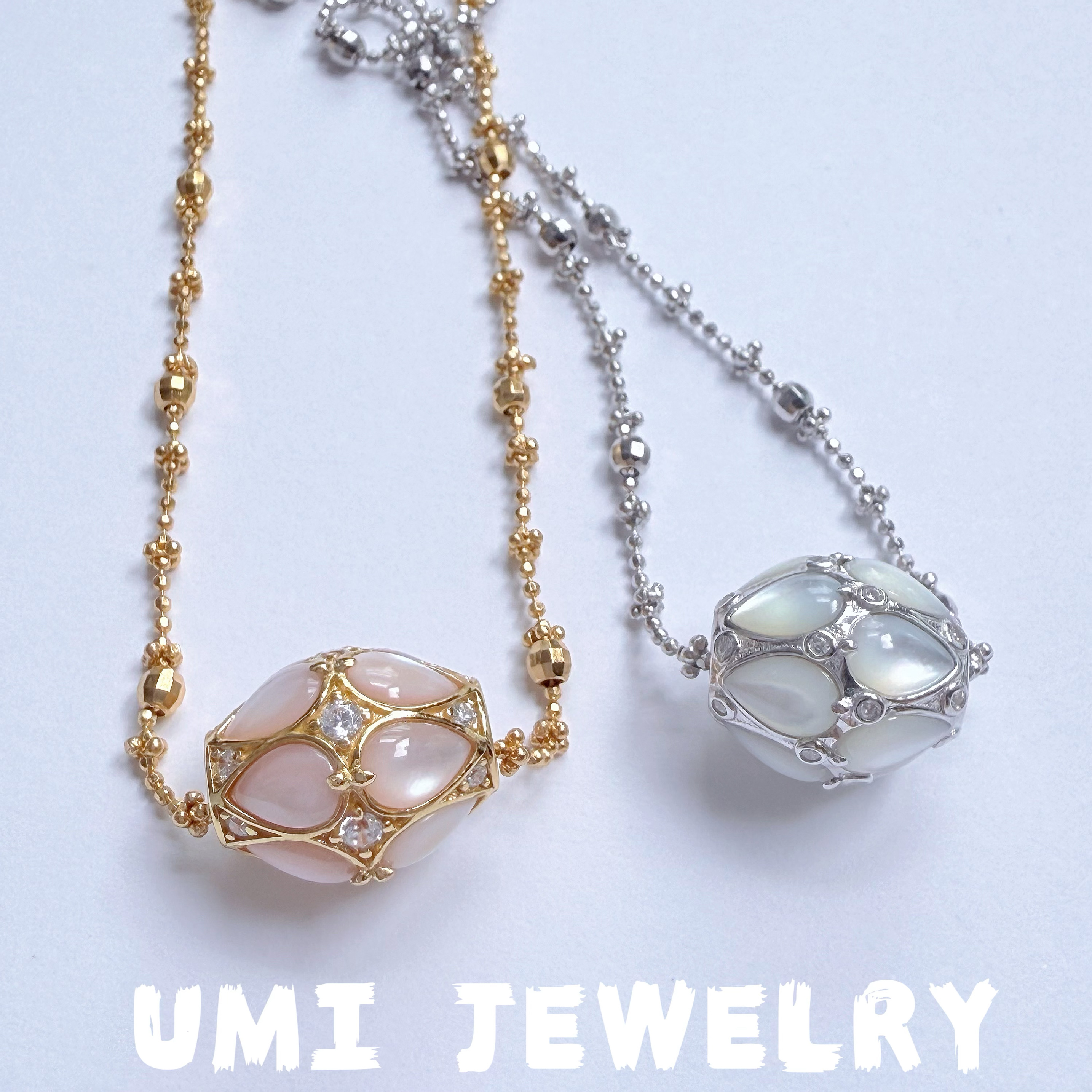 UMI家·轻珠宝/S925银镀k金·天然粉蓝贝母镶钻吊坠宫廷轻奢高级