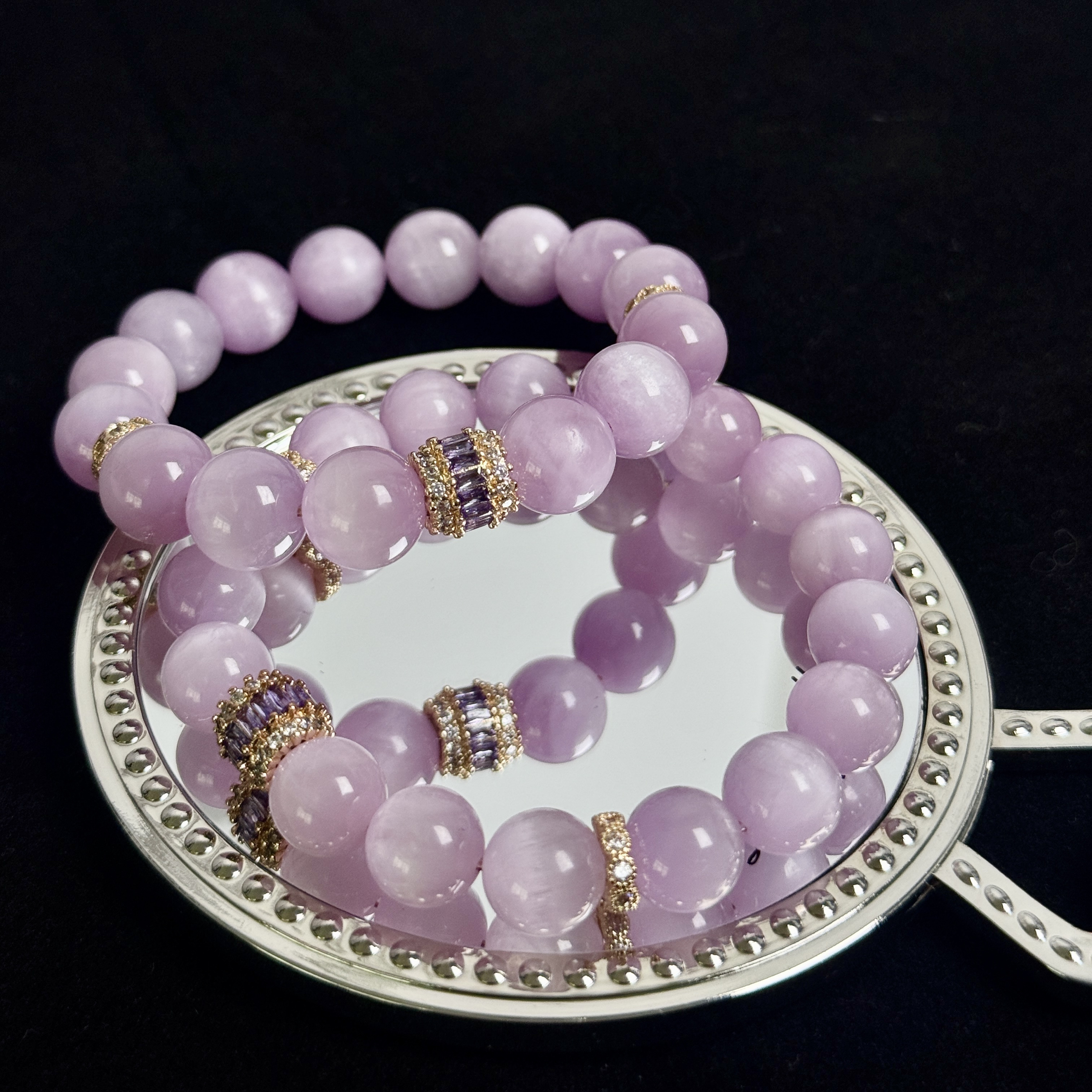 原创天然收藏级拉丝冰种猫眼紫锂辉手链女水晶手串送闺蜜女友礼物