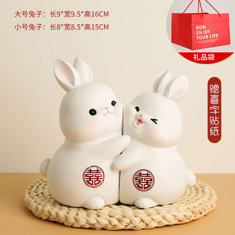 礼物结婚布置婚房装饰送新人兔子书立挡摆件客厅桌面卧室家居饰品