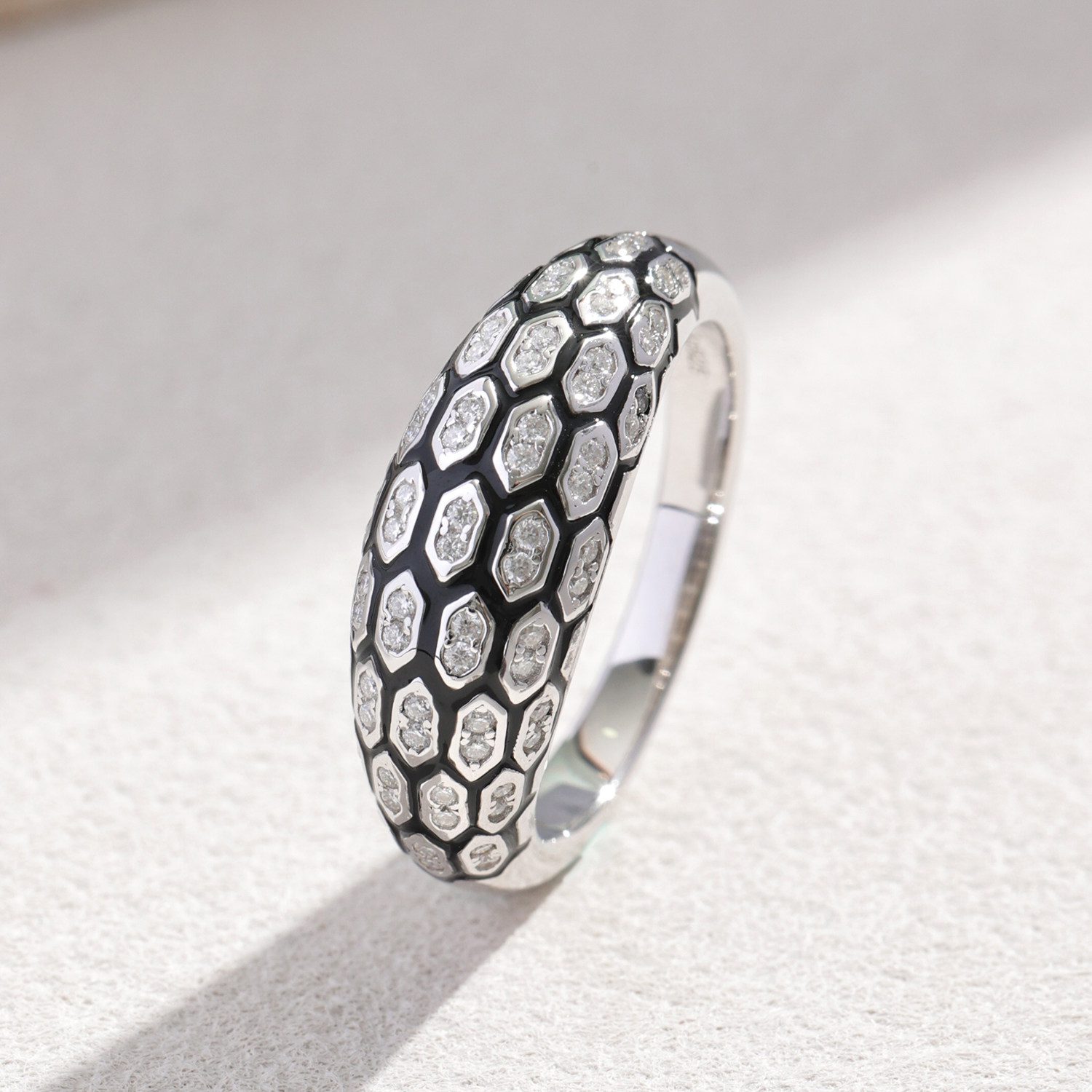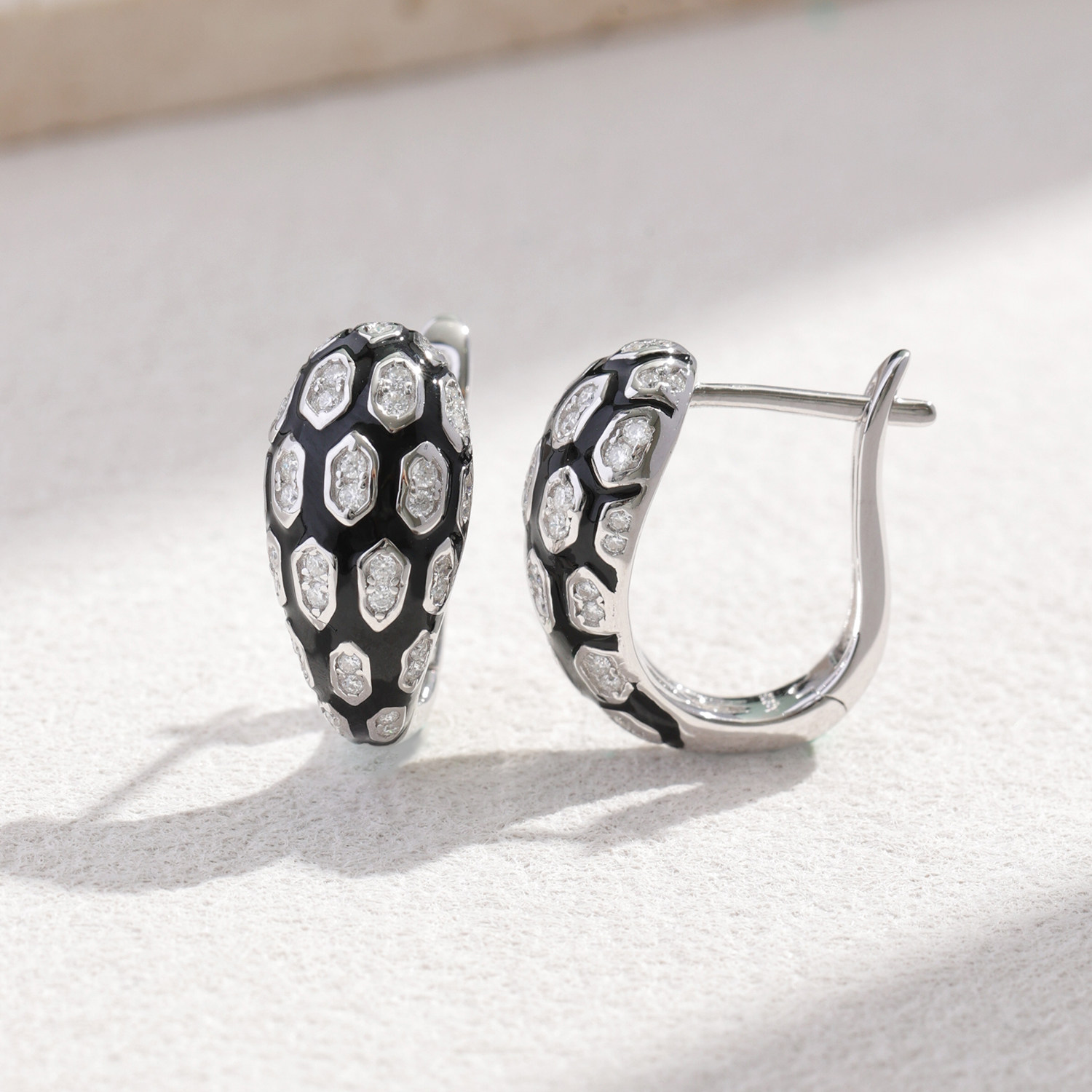 卓蝶珠宝S925银镀白金莫桑钻戒指黑色珐琅蛇纹耳环莫桑石耳扣纯银