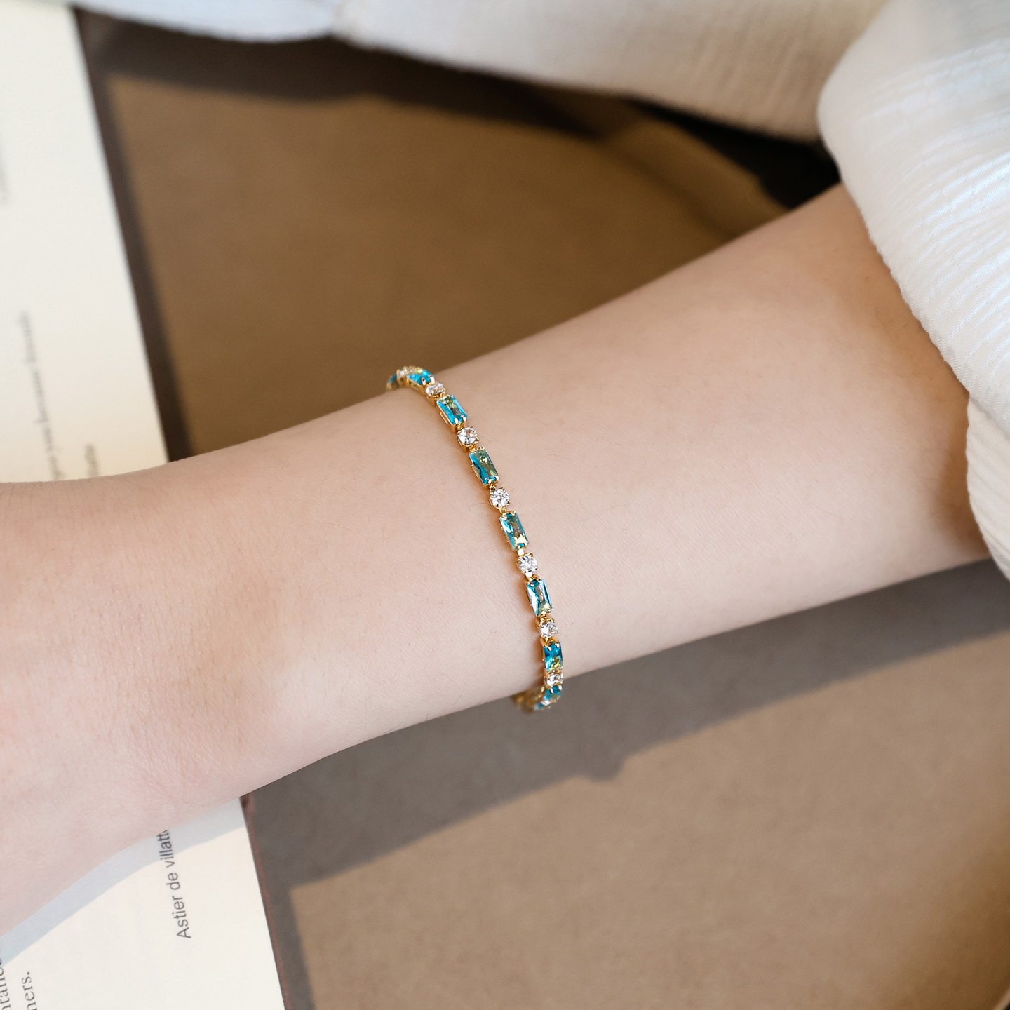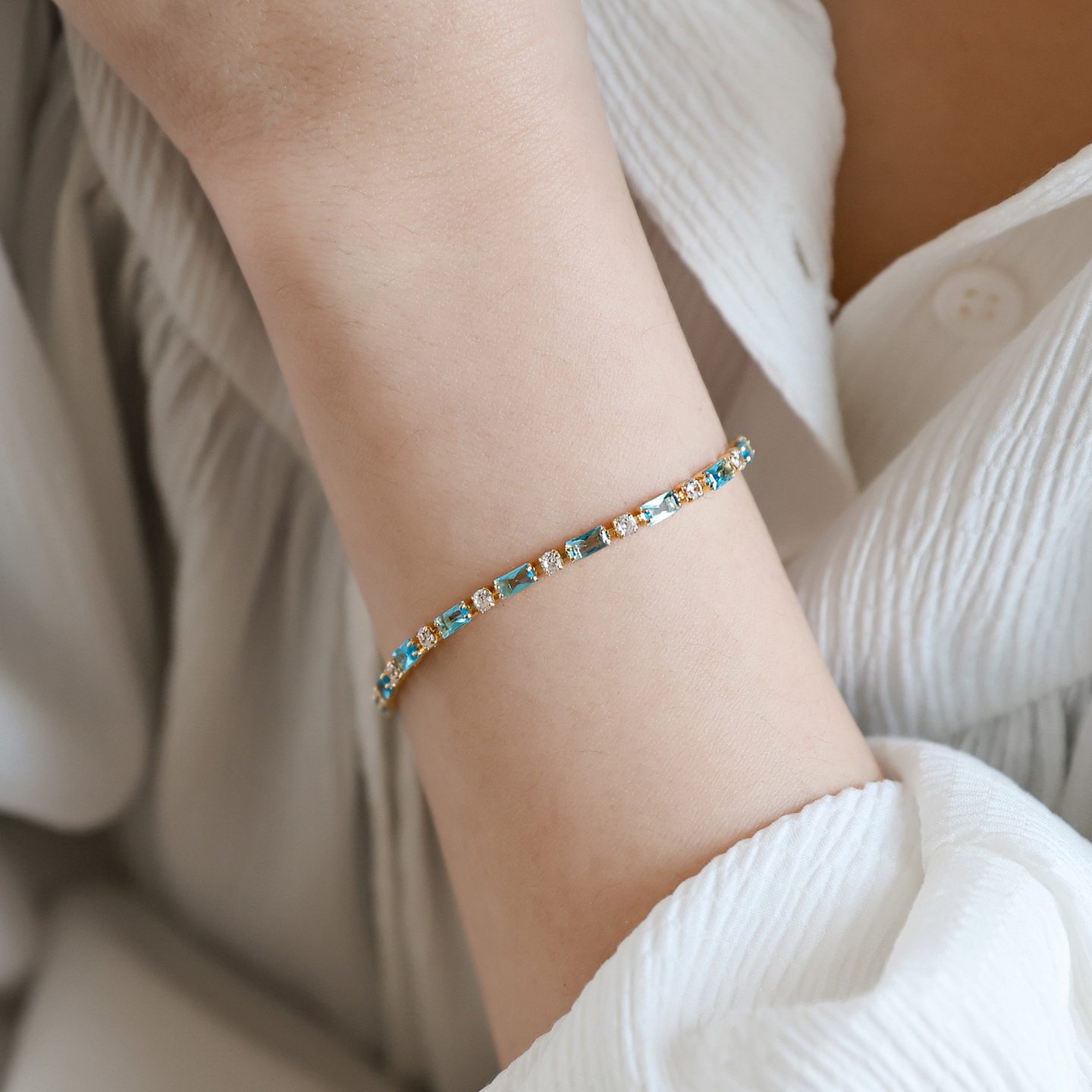 高品质~小众浅蓝色锆石水晶手链女轻奢设计感高级拼接生日礼物