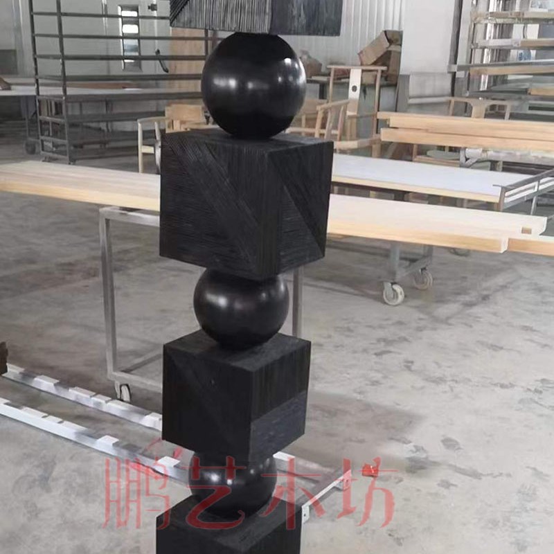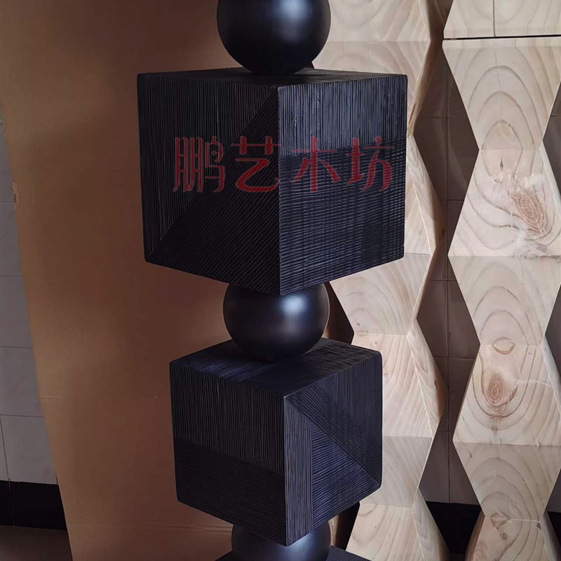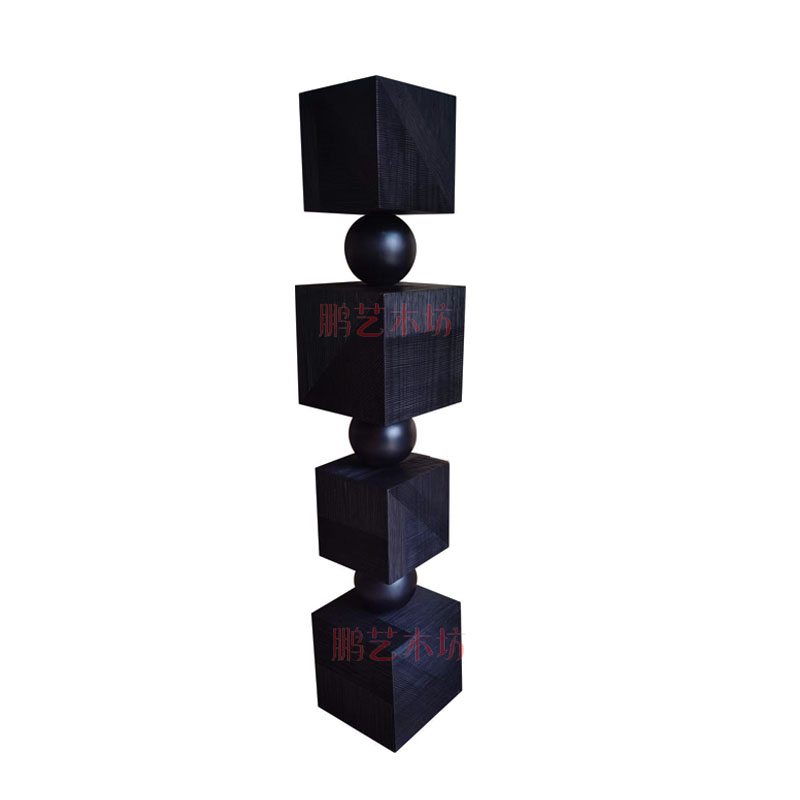 方圆无尽之柱木雕落地摆件酒店大堂售楼处装饰创意几何雕塑艺术品