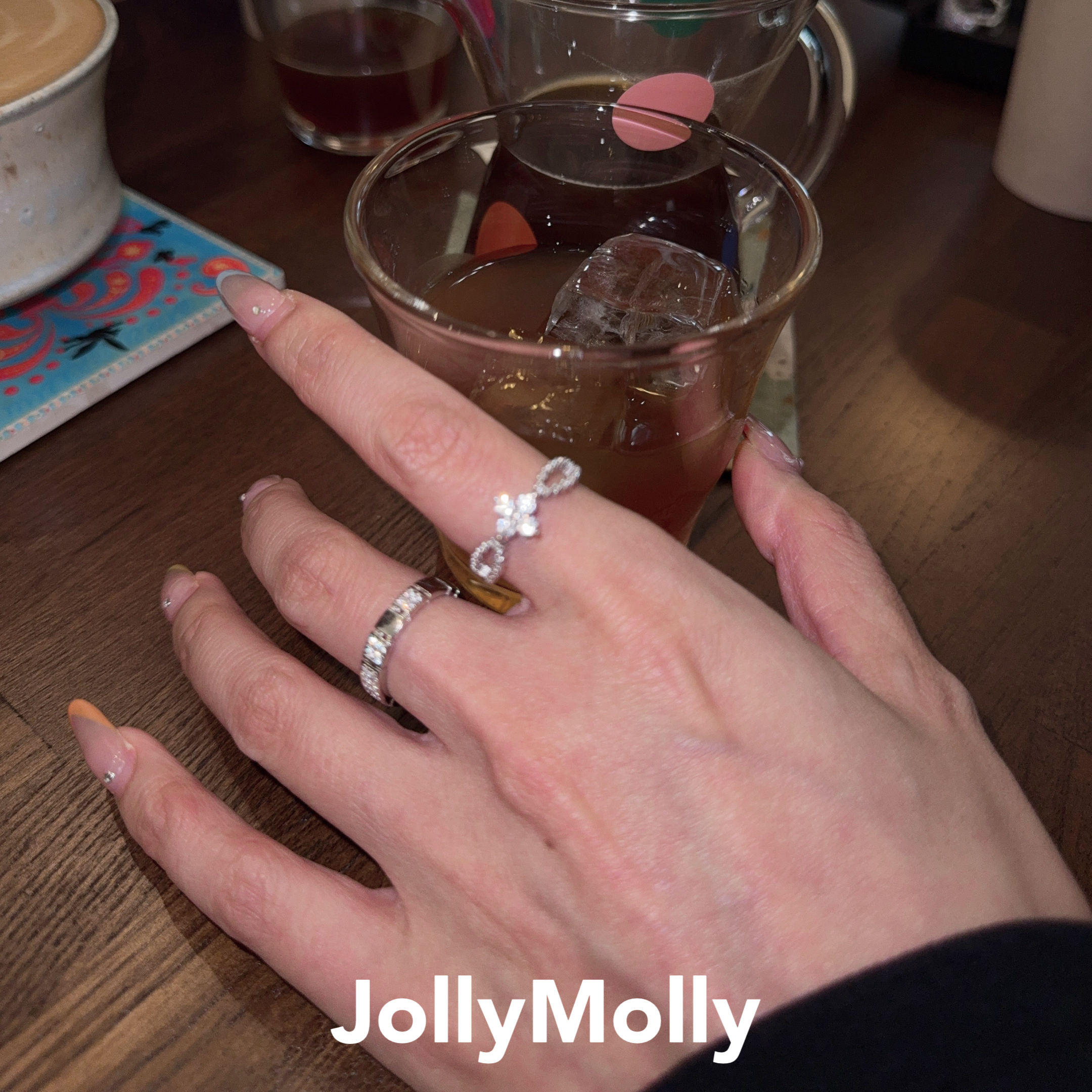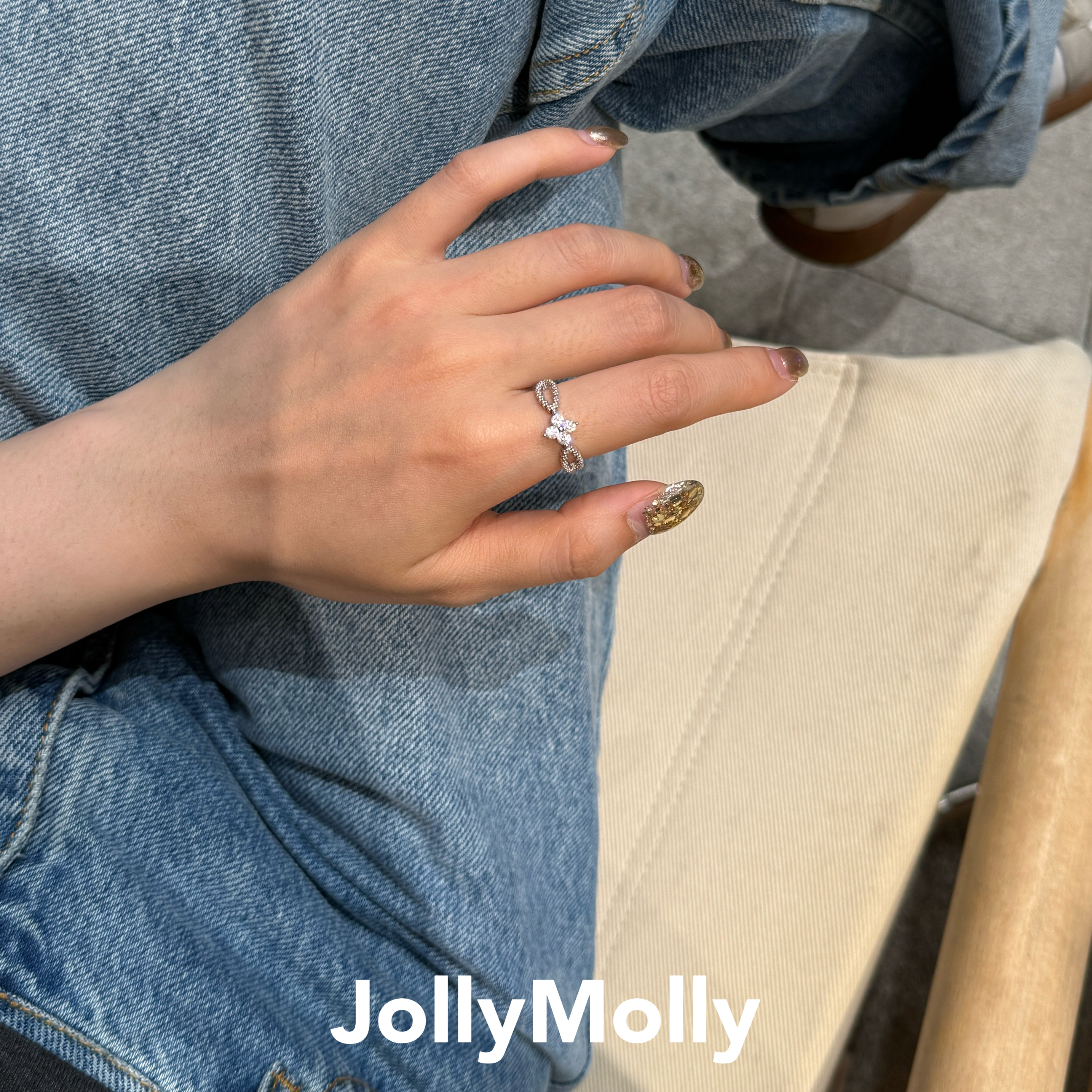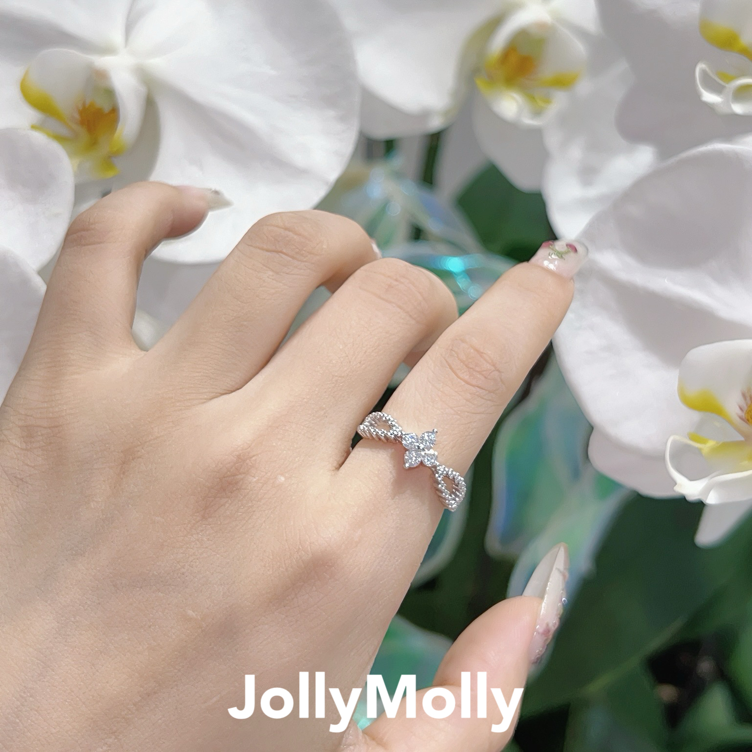 JollyMolly小众设计925银网红甜美轻奢生日礼物重工菱形四叶草戒