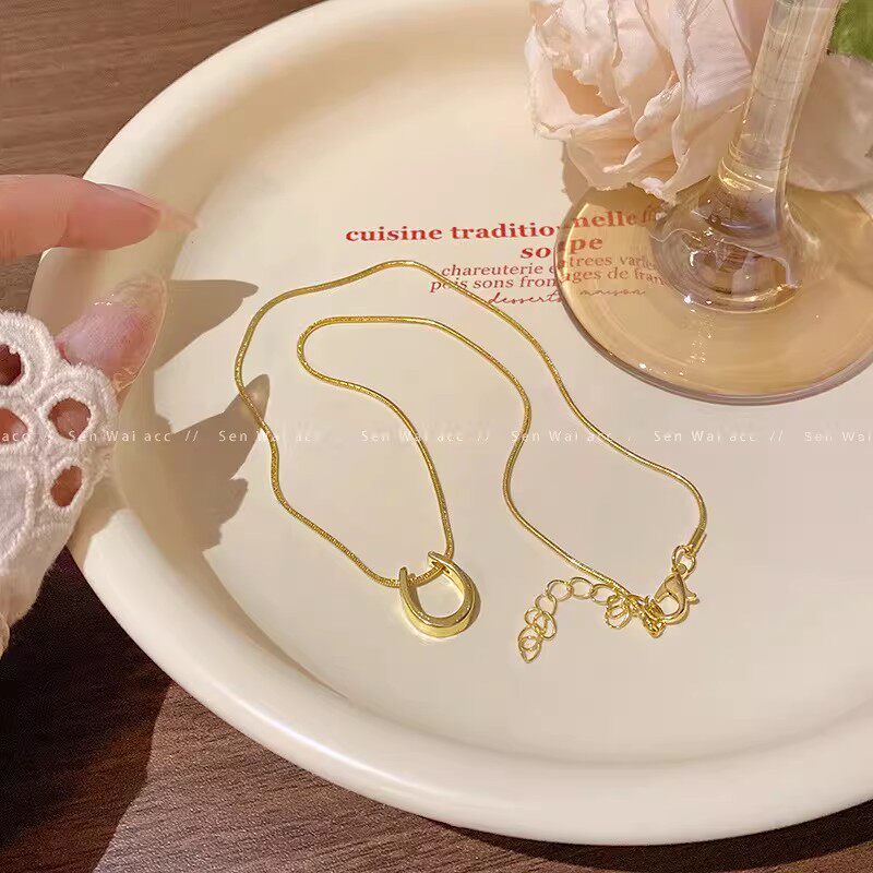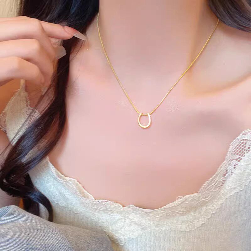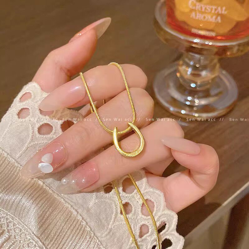 金色马蹄吊坠项链女款2025新款爆款轻奢高级感简约毛衣链装饰配饰