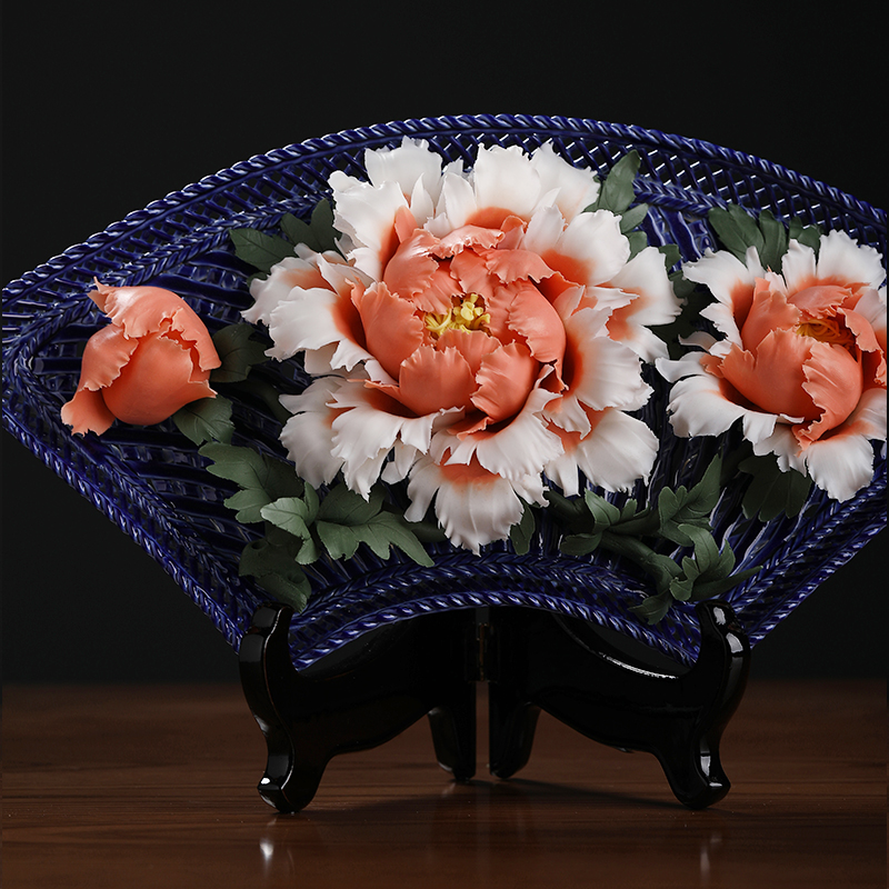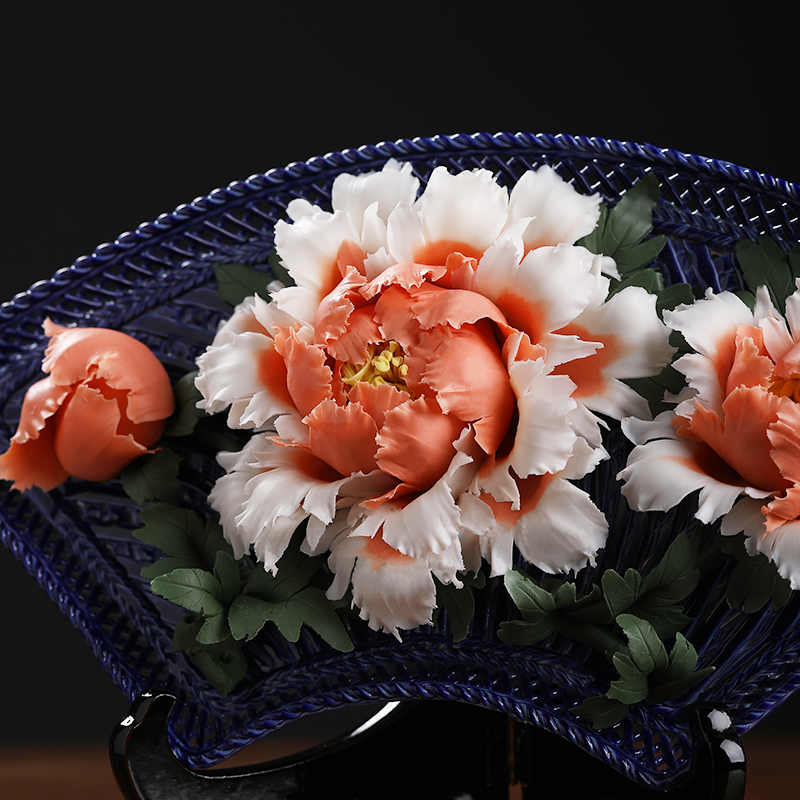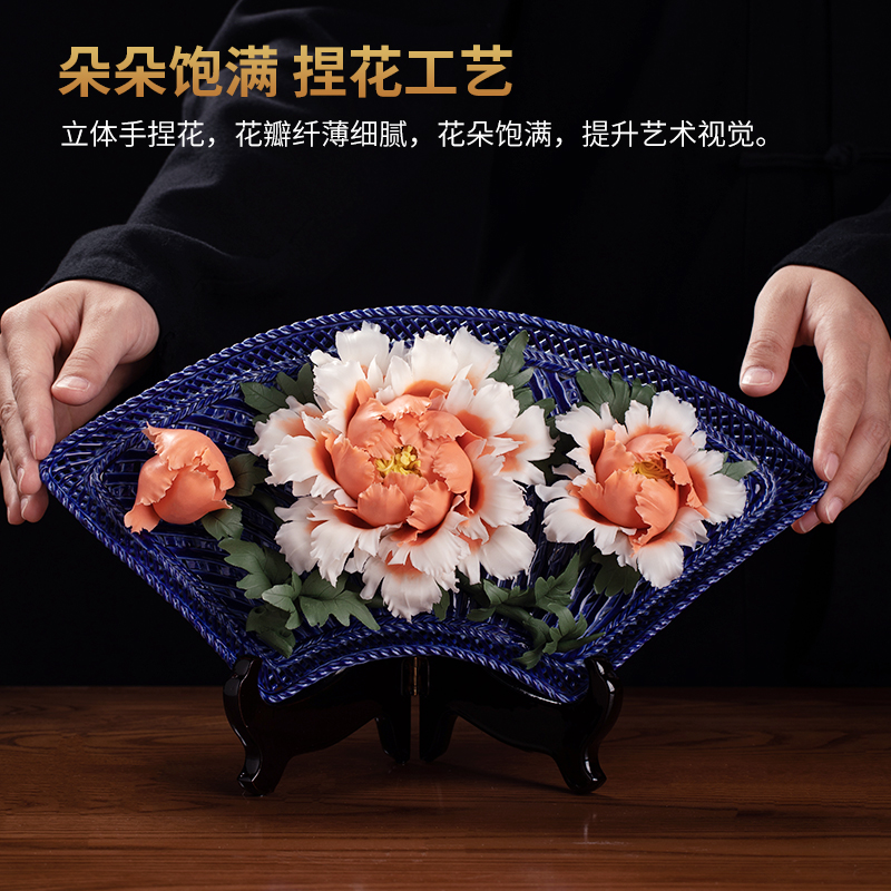 中式《花开富贵》手工窗型陶瓷牡丹瓷花挂盘家居客厅玄关艺术装饰