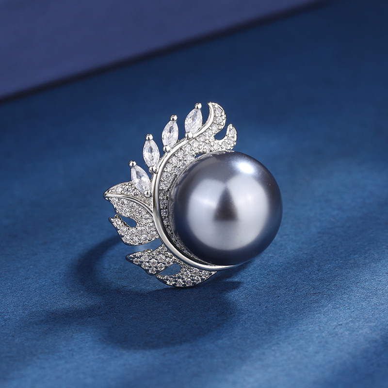 珠宝S925银镀18K金镶嵌贝母珍珠时尚镶钻灰珠创意女套装14mm12mm