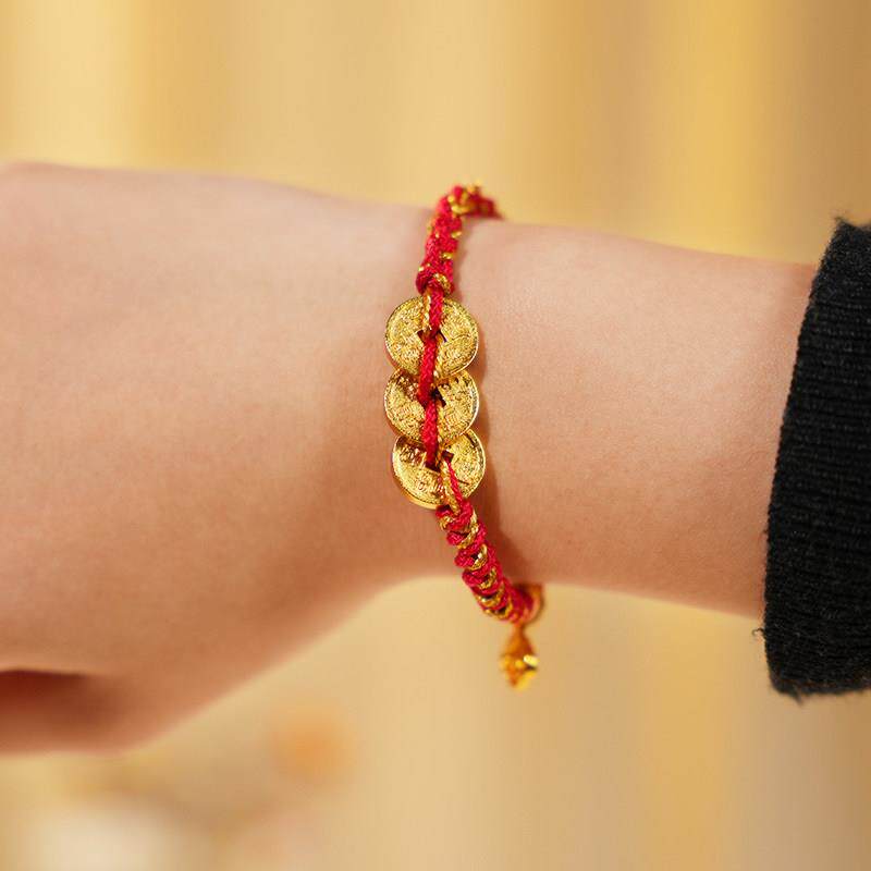 朱炳仁铜 干 干道嘉五帝钱手錬钱串子编织红绳手绳情侣款送女友招