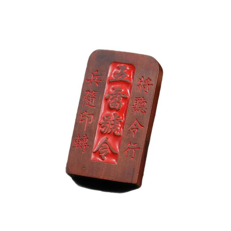 雷击枣木老料浮雕王灵官令牌吊坠五雷号令填砂手把件双面精雕饰品