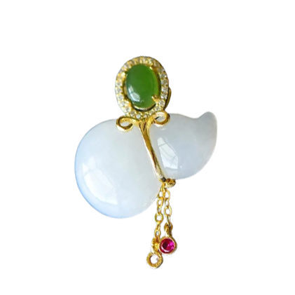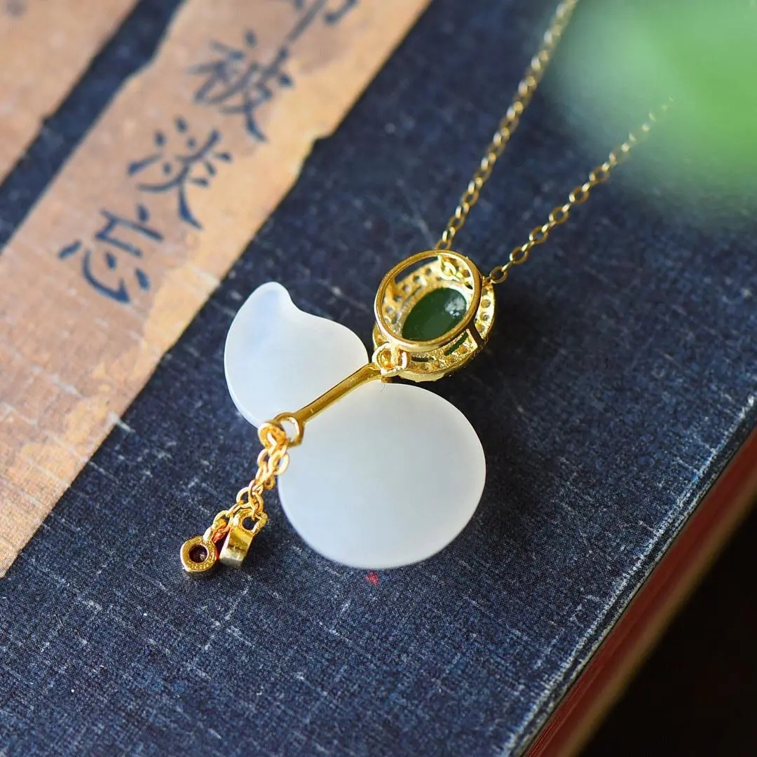 和田玉白玉葫芦流苏吊坠中国风S925纯银鎏金无事牌锁骨链饰品