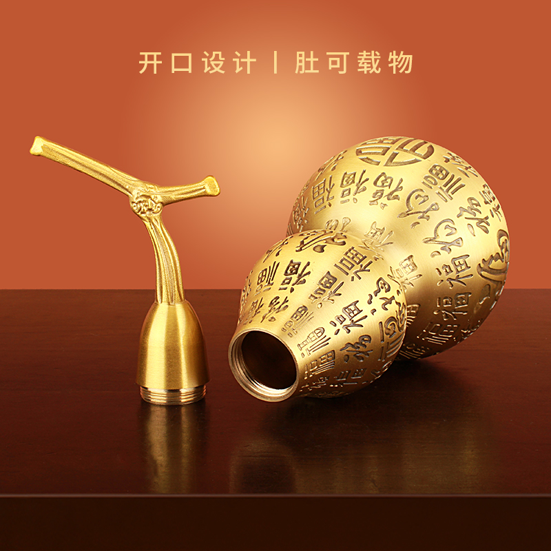 开盖黄铜百福葫芦摆件新中式空心客厅玄关办公室酒柜桌面装饰礼品