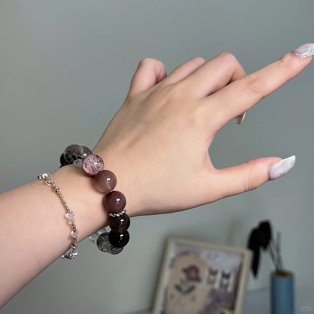 原创幽灵彩兔毛手串黑发晶小众精致水晶手链【BLACKPINK AIR】