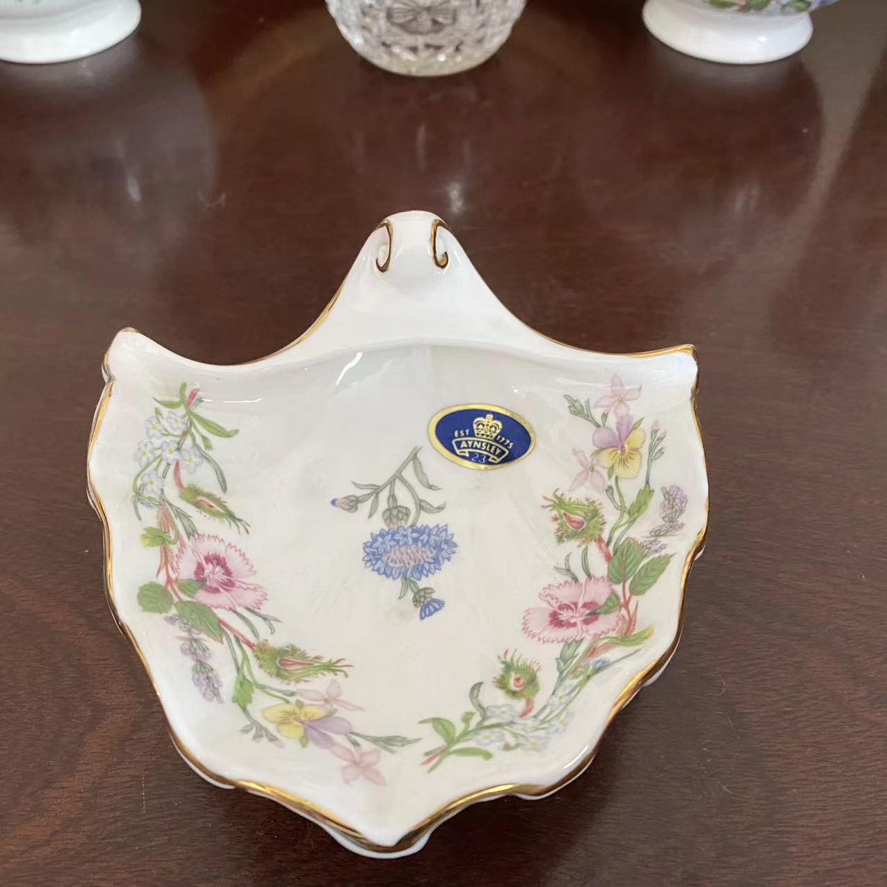 AYNSLEY 安兹丽 WILD TUDOR 都铎贝壳盘 描金装饰盘 花边提手瓷碟