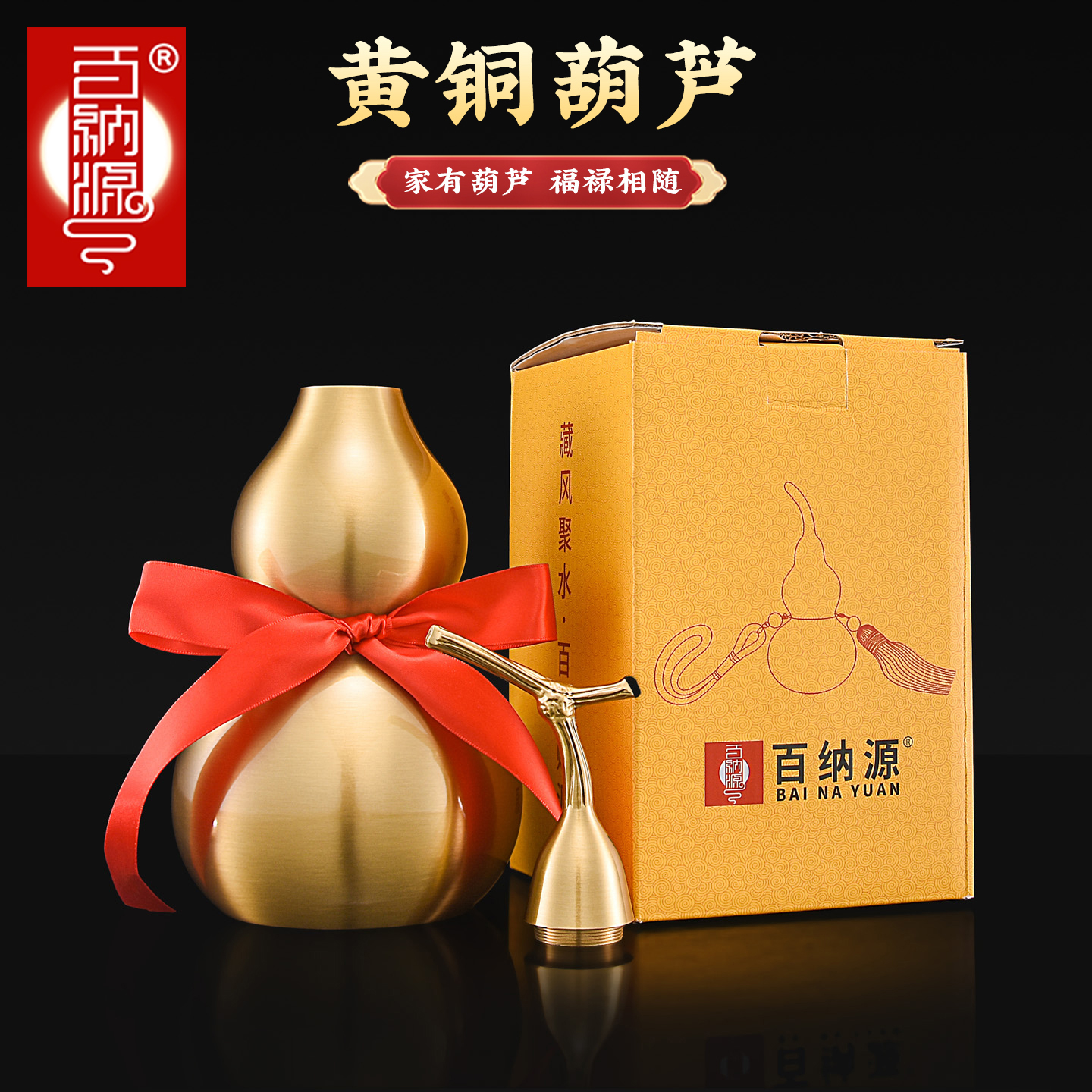 铜葫芦摆件招财镇宅开口空心纯黄铜葫芦龙头八卦客厅办公室装饰品
