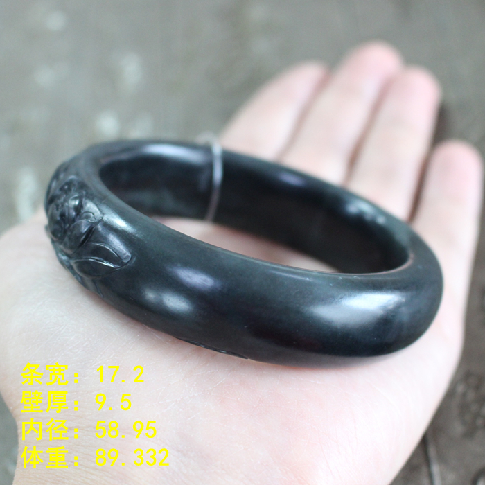 58.95满分脂份密度细腻度 雕花和田玉沙枣青底青花籽料手镯 朕®
