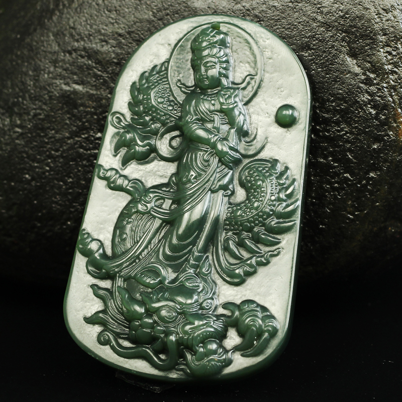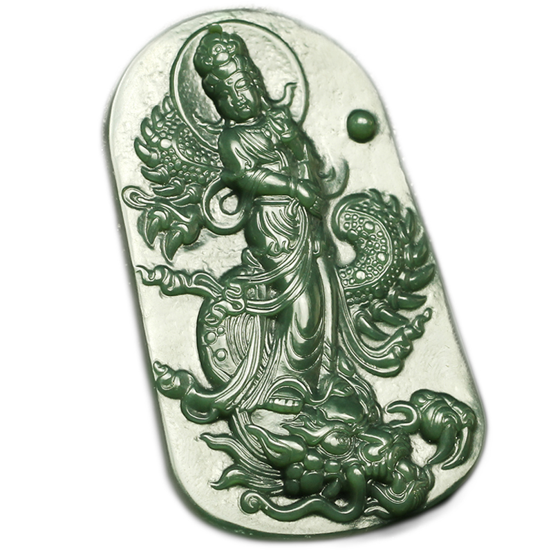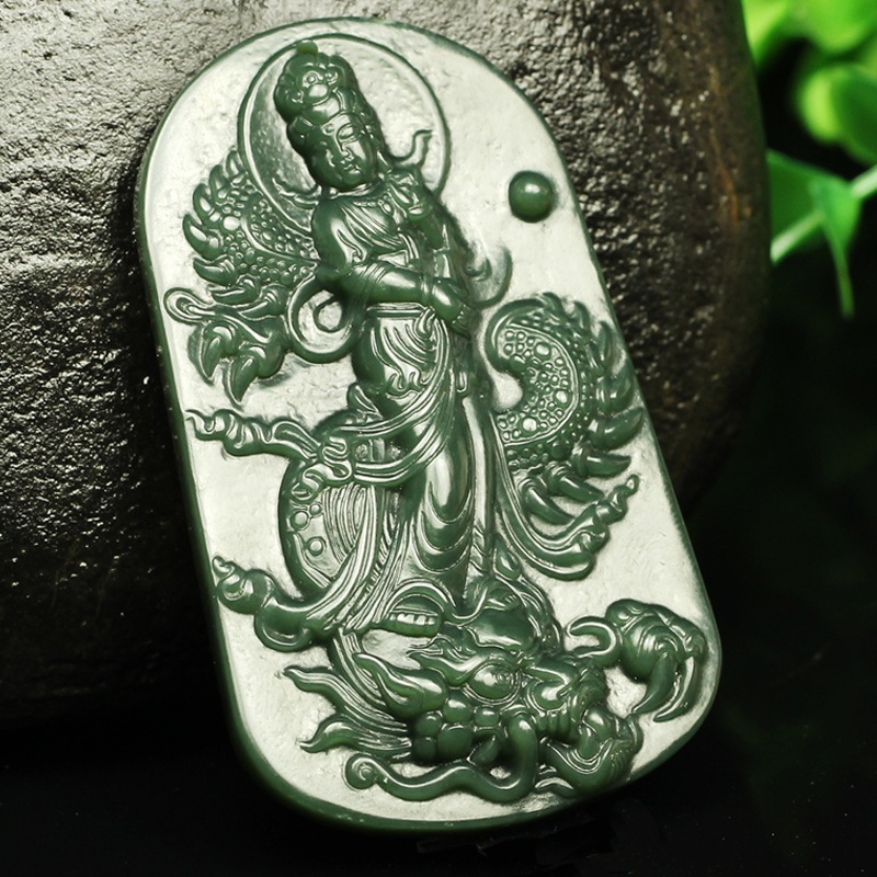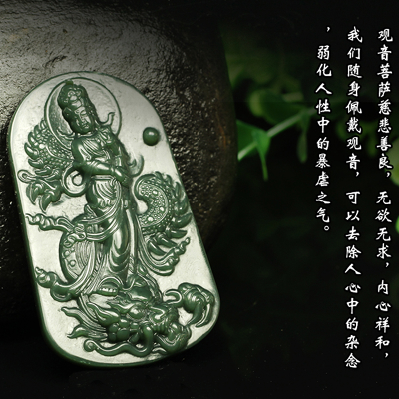 天然新疆和田玉青玉祥龙观音吊坠男士款正品和田玉坠挂件玉佩挂坠